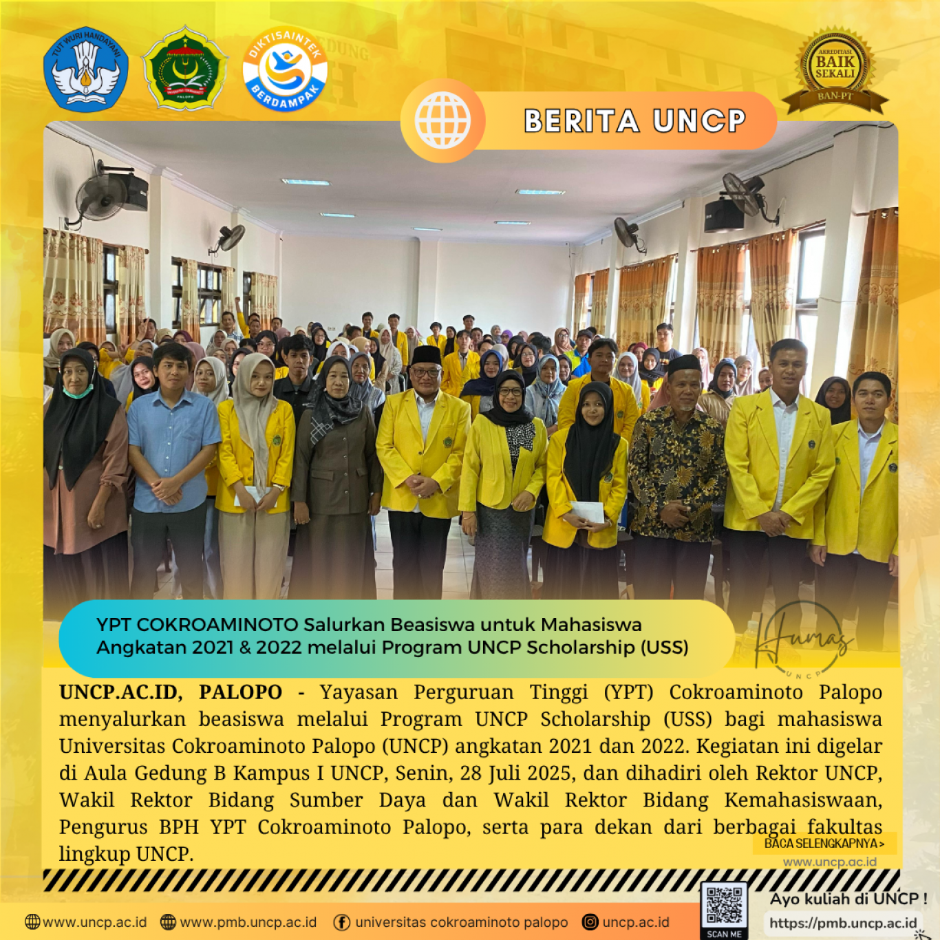 YPT COKROAMINOTO Salurkan Beasiswa untuk Mahasiswa Angkatan 2021 & 2022 melalui Program USS