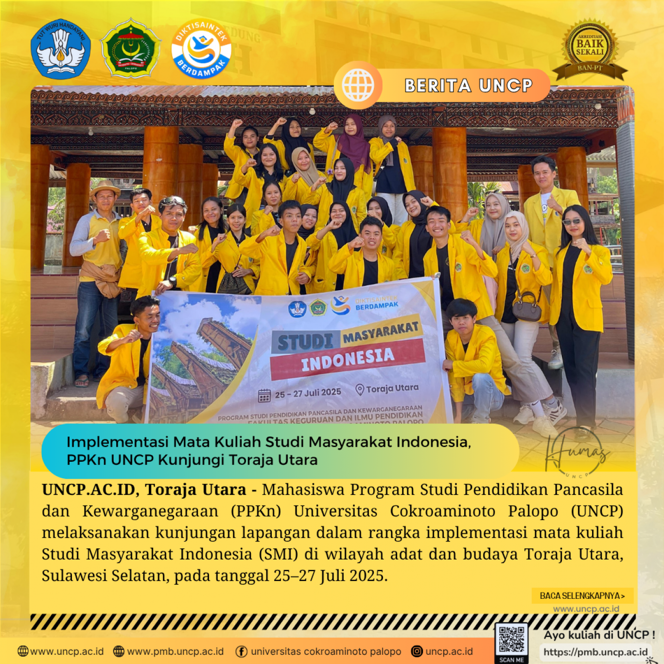 UNCP.AC.ID, Toraja Utara — Mahasiswa Program Studi Pendidikan Pancasila dan Kewarganegaraan (PPKn) Universitas Cokroaminoto Palopo (UNCP) melaksanakan kunjungan lapangan dalam rangka…