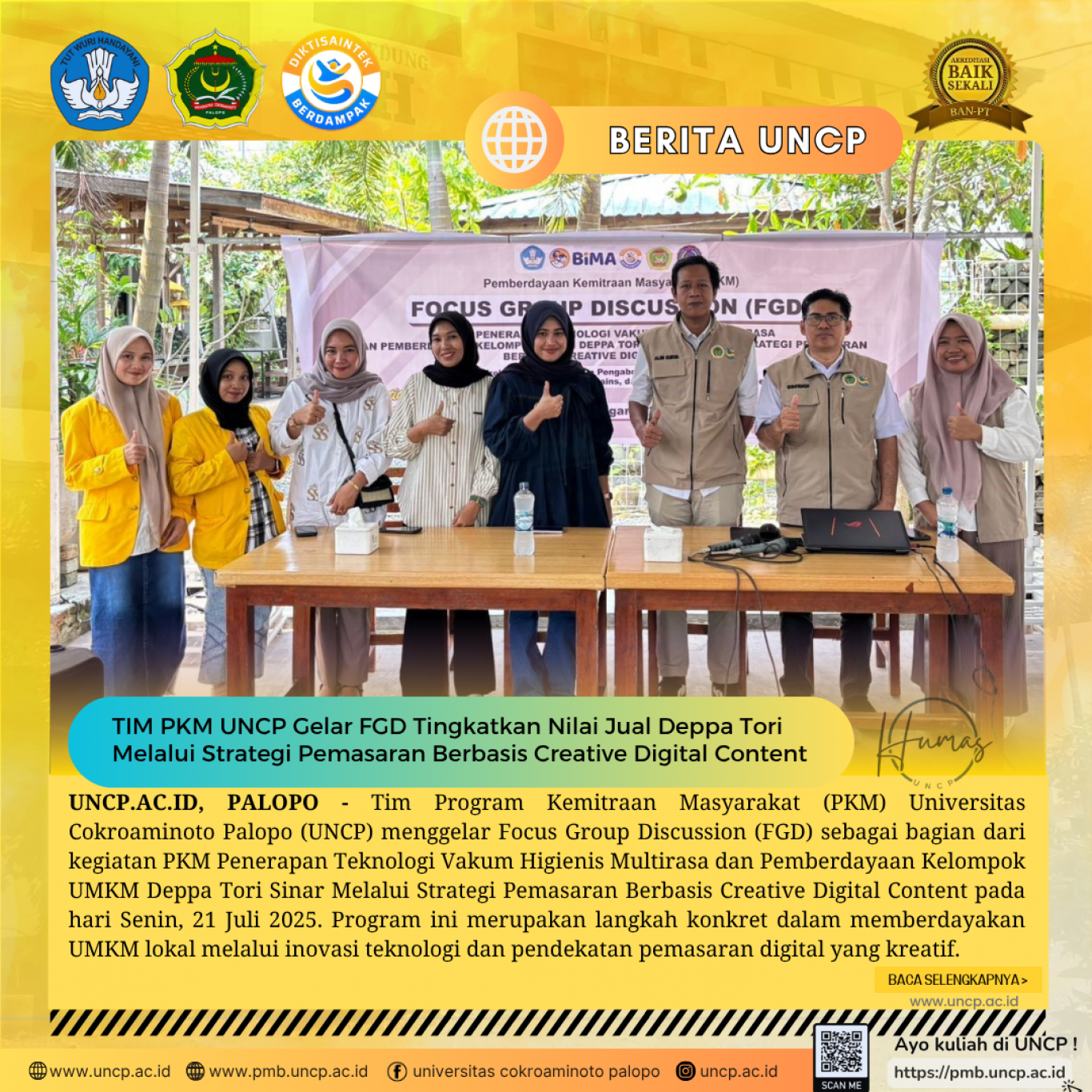 TIM PKM UNCP Gelar FGD Tingkatkan Nilai Jual Deppa Tori Melalui Strategi Pemasaran Berbasis CDC