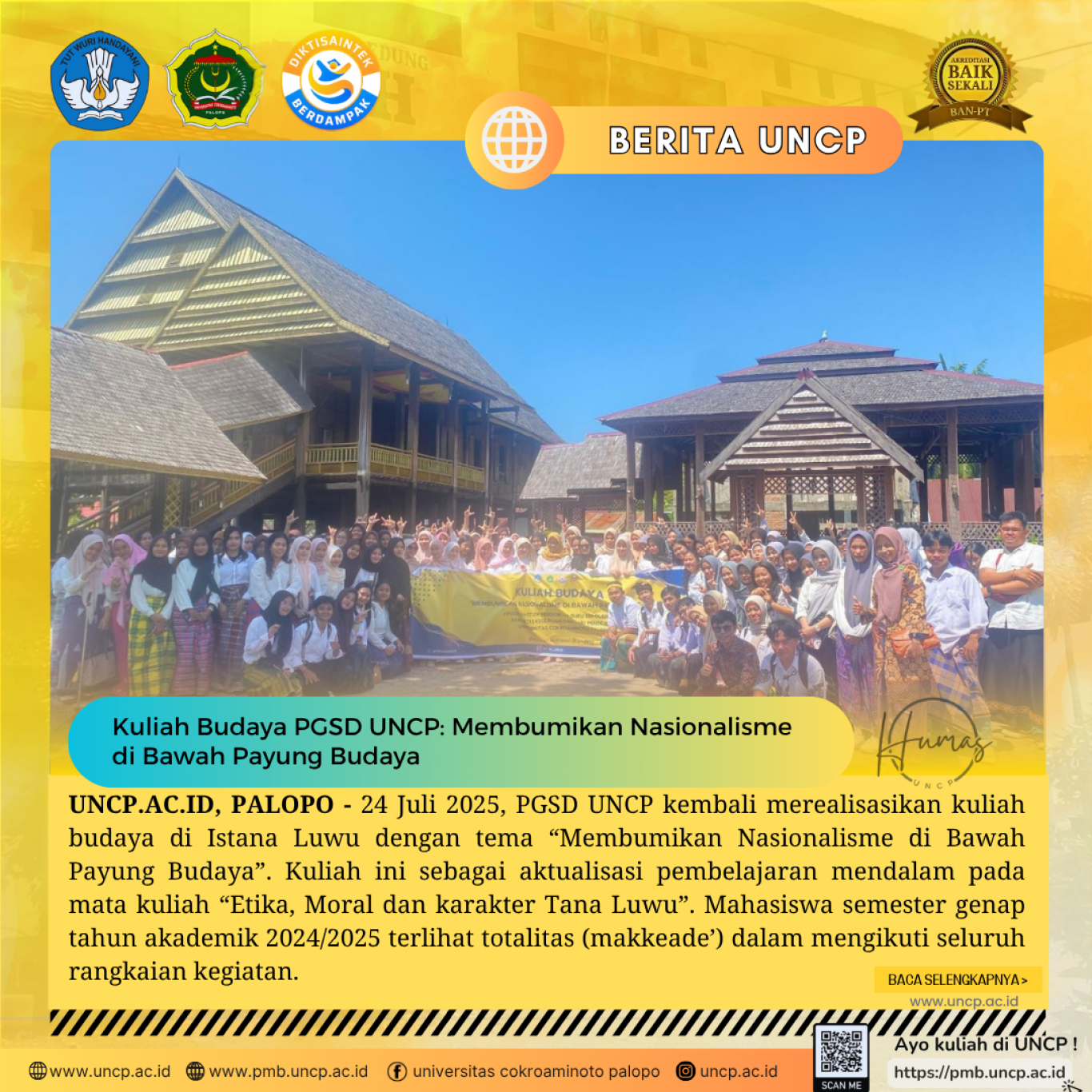 UNCP.AC.ID, PALOPO - 24 Juli 2025, PGSD UNCP kembali merealisasikan kuliah budaya di Istana Luwu dengan tema “Membumikan Nasionalisme di Bawah…