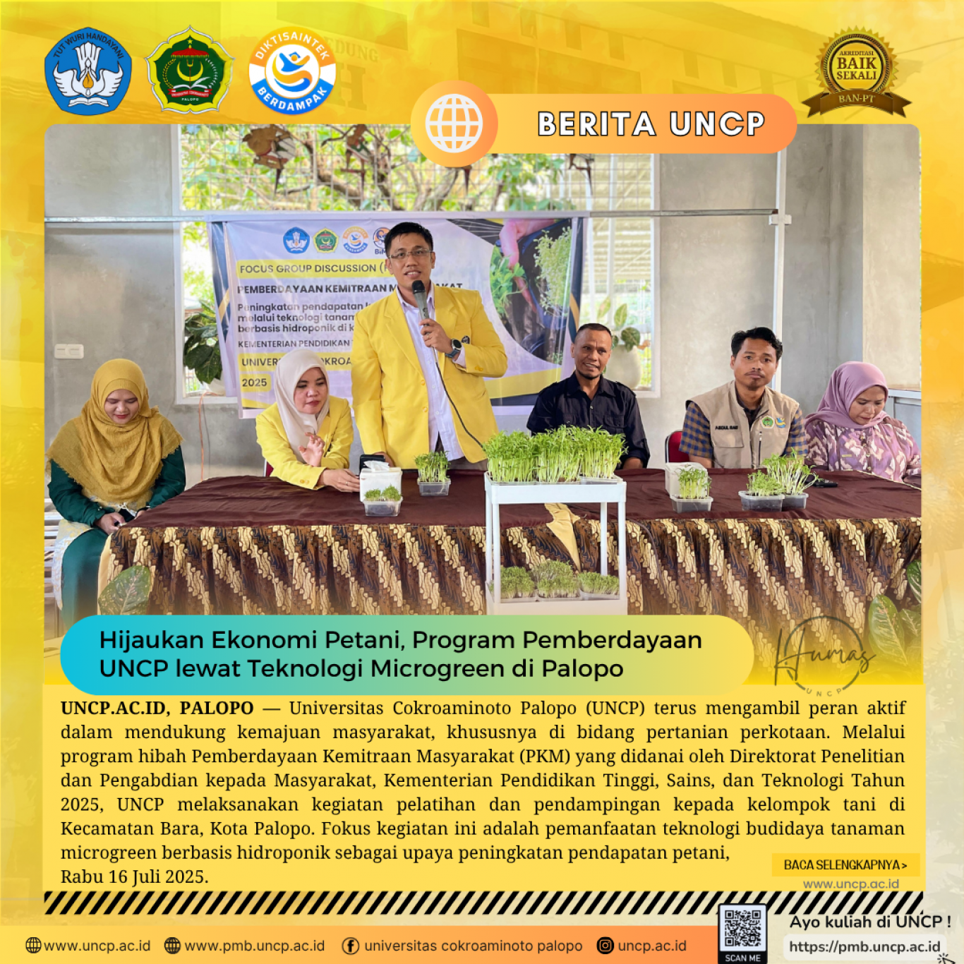 Hijaukan Ekonomi Petani, Program Pemberdayaan UNCP lewat Teknologi Microgreen di Palopo