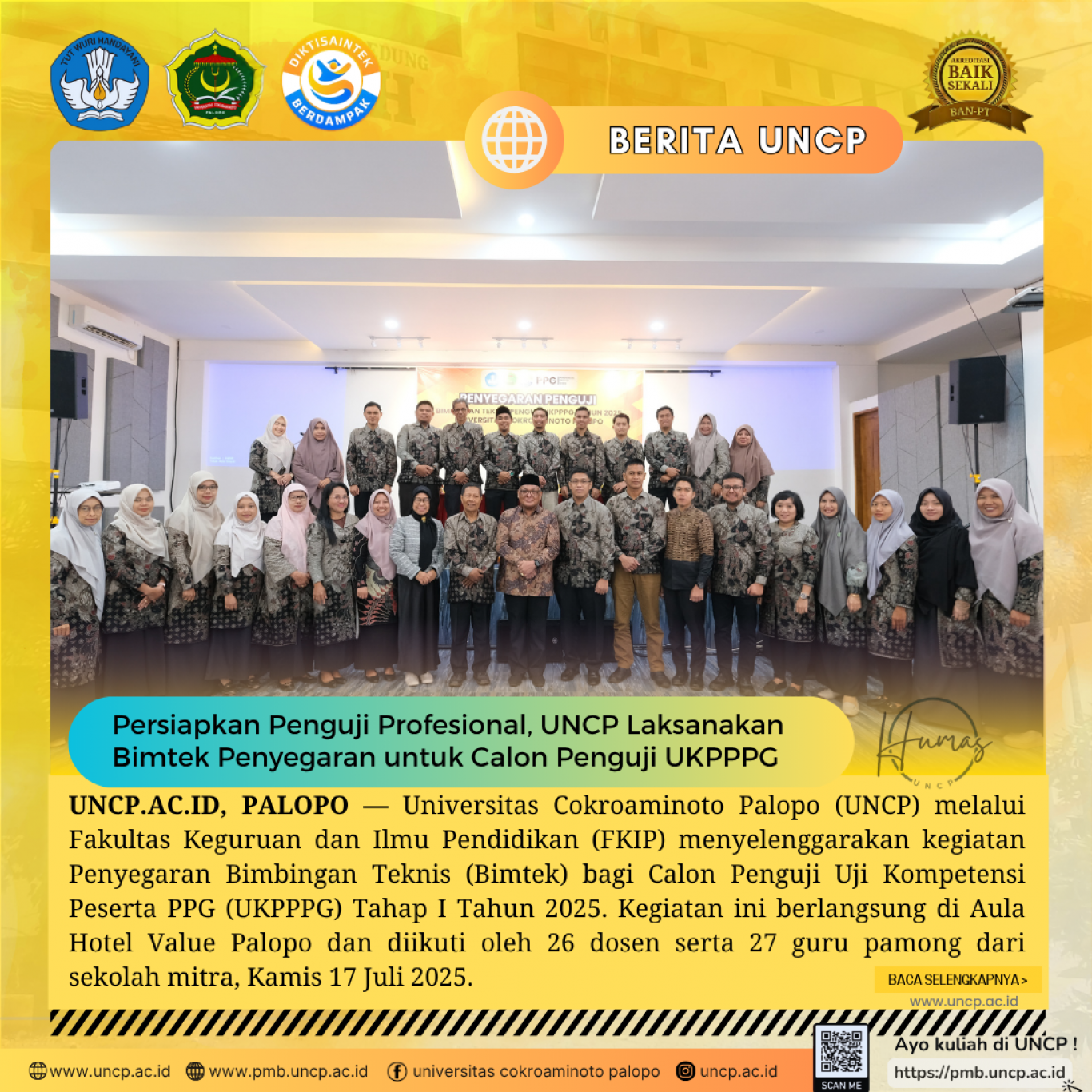 UNCP.AC.ID PALOPO — Universitas Cokroaminoto Palopo (UNCP) melalui Fakultas Keguruan dan Ilmu Pendidikan (FKIP) menyelenggarakan kegiatan Penyegaran Bimbingan Teknis (Bimtek)…