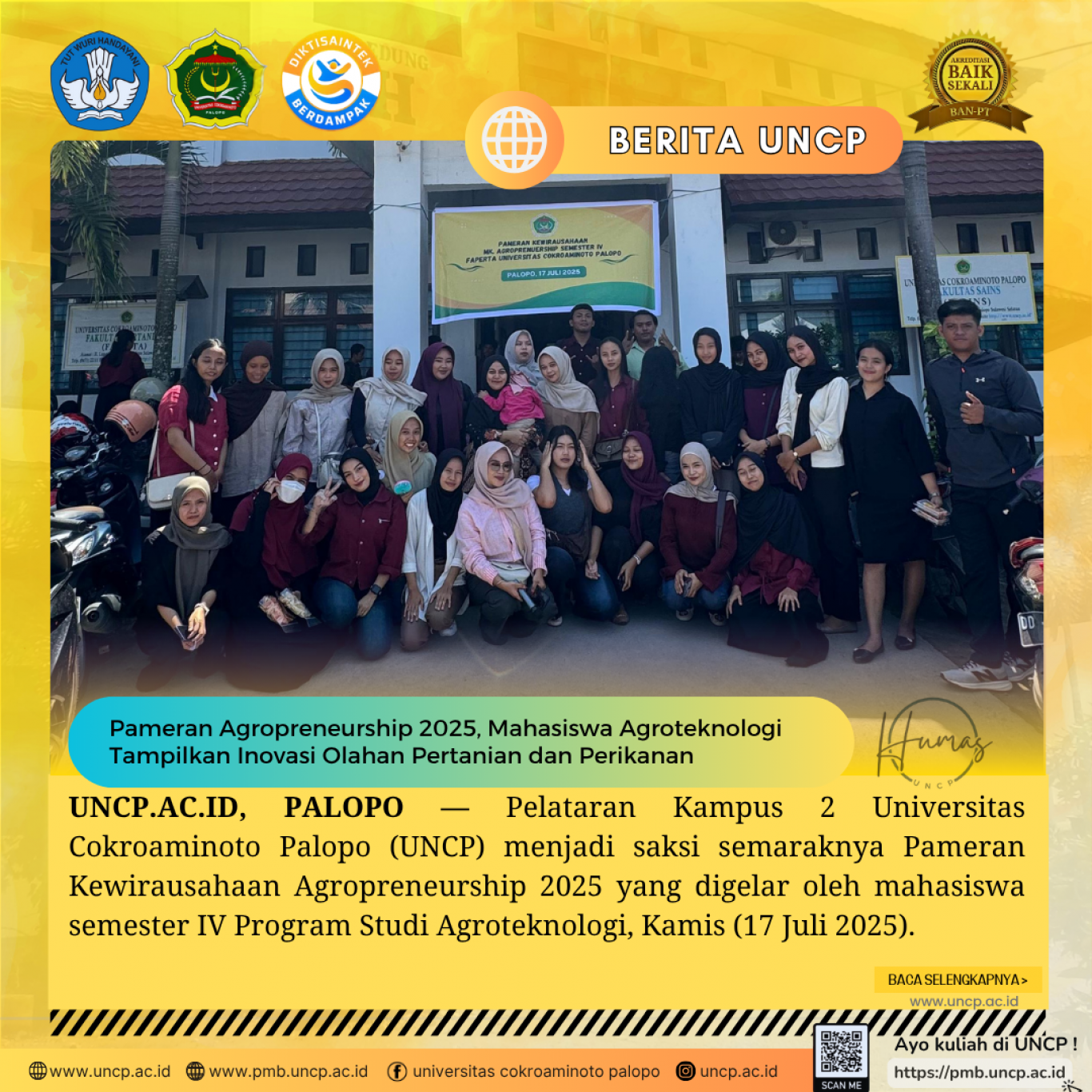 UNCP.AC.ID, PALOPO – Pelataran Kampus 2 Universitas Cokroaminoto Palopo (UNCP) menjadi saksi semaraknya Pameran Kewirausahaan Agropreneurship 2025 yang digelar oleh mahasiswa…