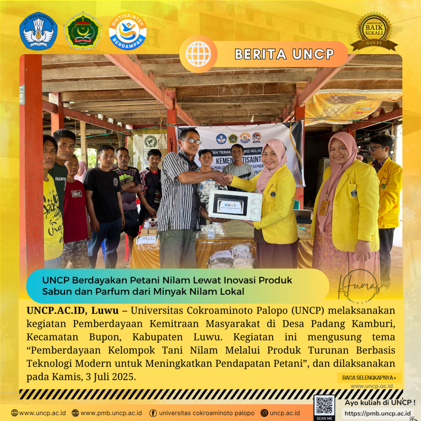 UNCP.AC.ID, Luwu — Universitas Cokroaminoto Palopo (UNCP) melaksanakan kegiatan Pemberdayaan Kemitraan Masyarakat di Desa Padang Kamburi, Kecamatan Bupon, Kabupaten Luwu.…