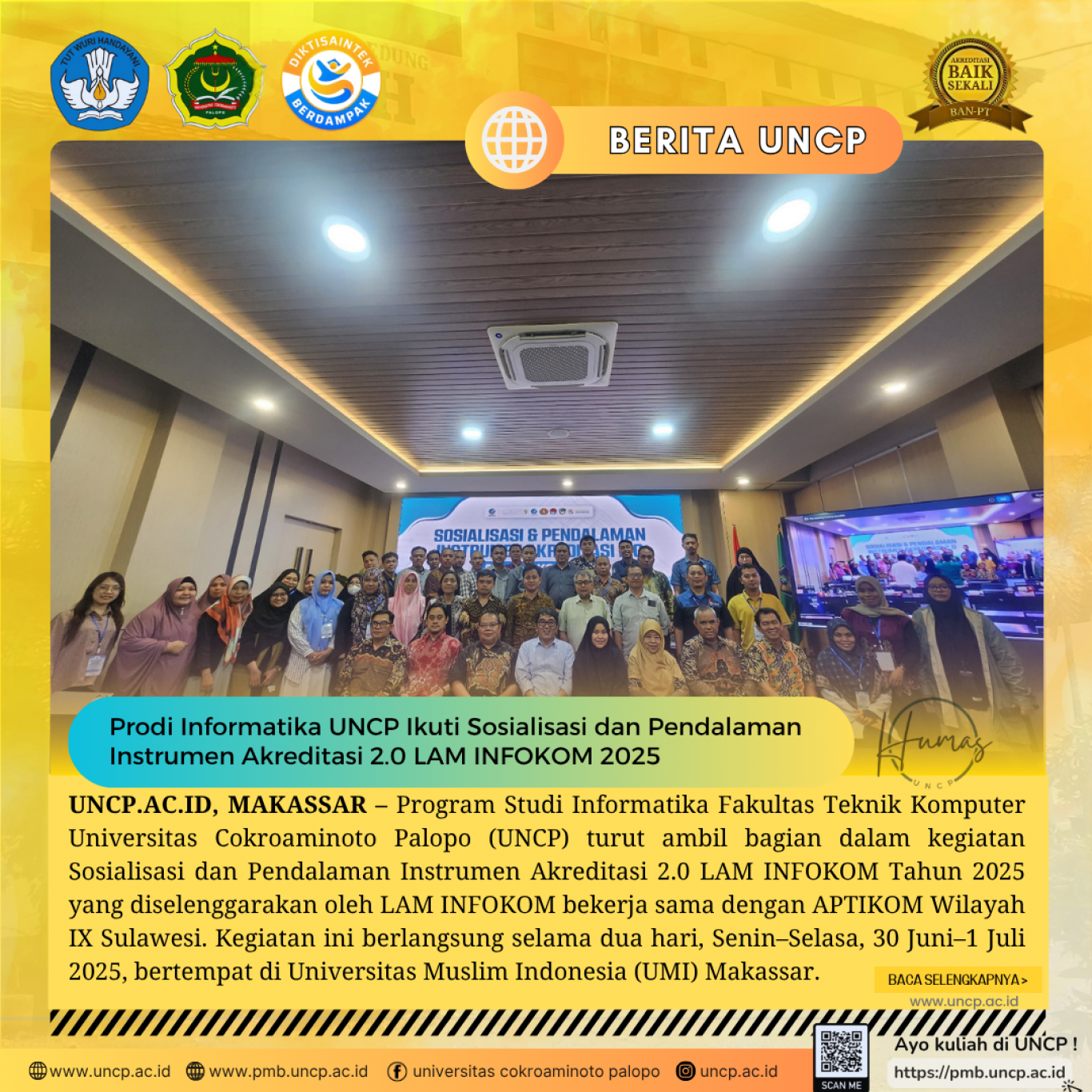 UNCP.AC.ID, MAKASSAR – Program Studi Informatika Fakultas Teknik Komputer Universitas Cokroaminoto Palopo (UNCP) turut ambil bagian dalam kegiatan Sosialisasi dan…