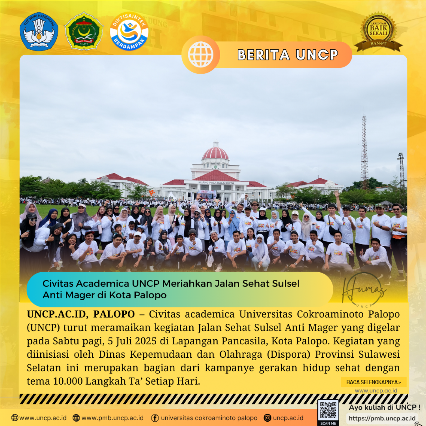 UNCP.AC.ID, PALOPO – Civitas academica Universitas Cokroaminoto Palopo (UNCP) turut meramaikan kegiatan Jalan Sehat Sulsel Anti Mager yang digelar…