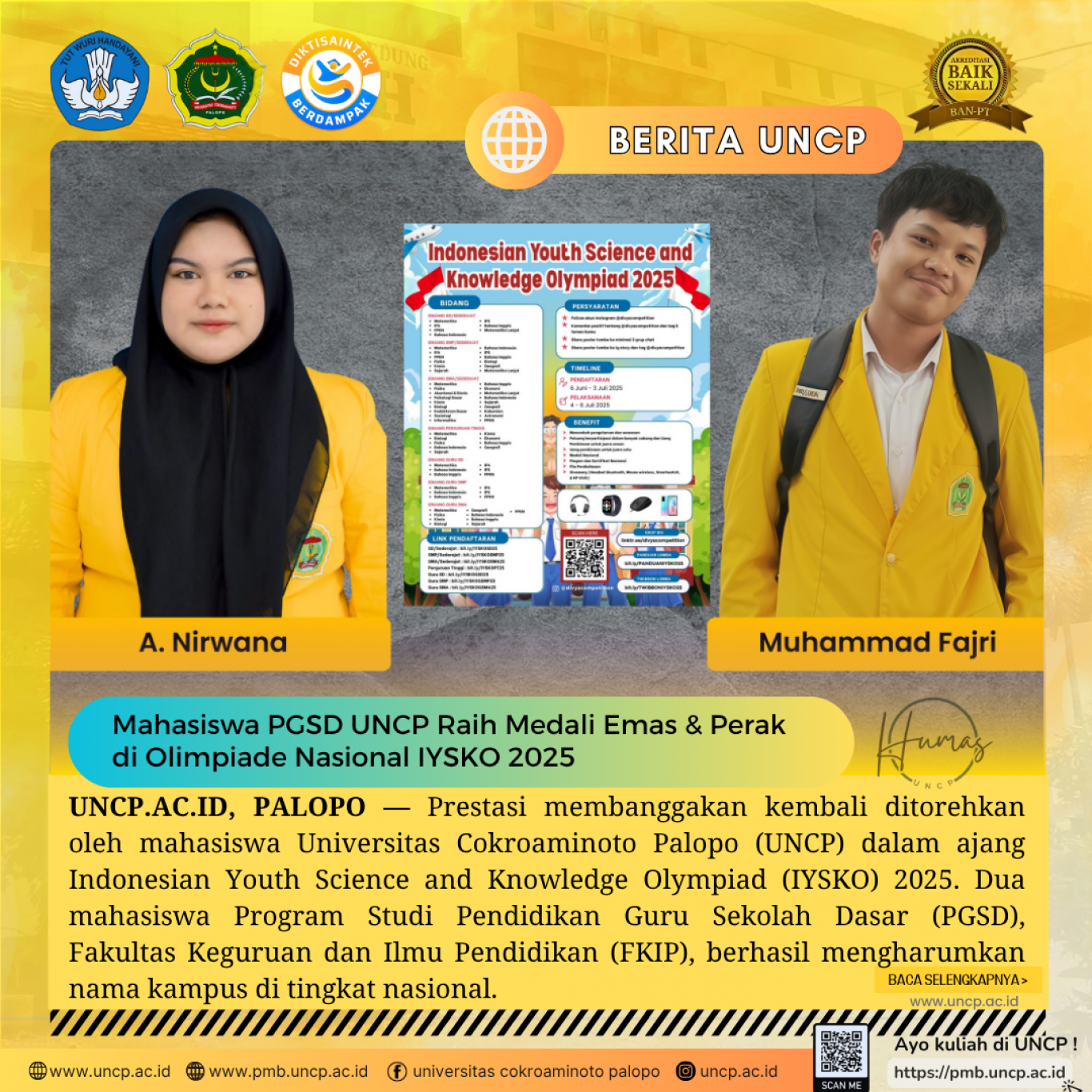 Mahasiswa PGSD UNCP Raih Medali Emas & Perak di Olimpiade Nasional IYSKO 2025