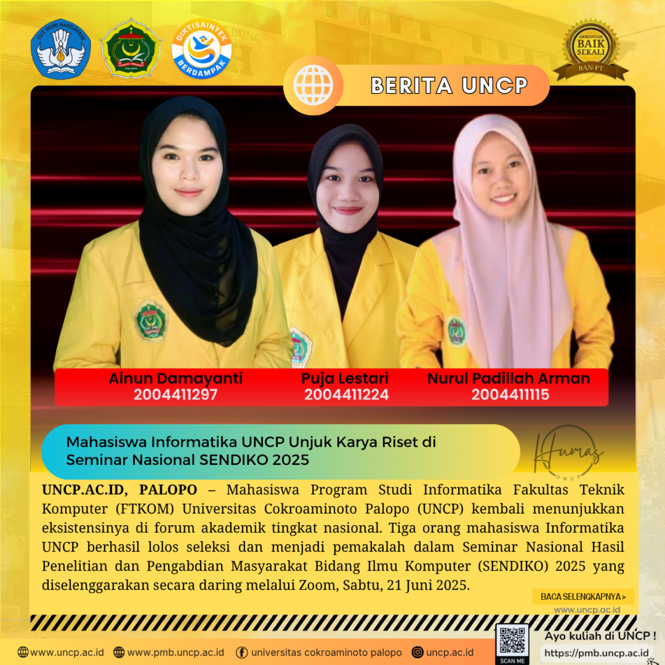 Mahasiswa Informatika UNCP Unjuk Karya Riset di Seminar Nasional SENDIKO 2025