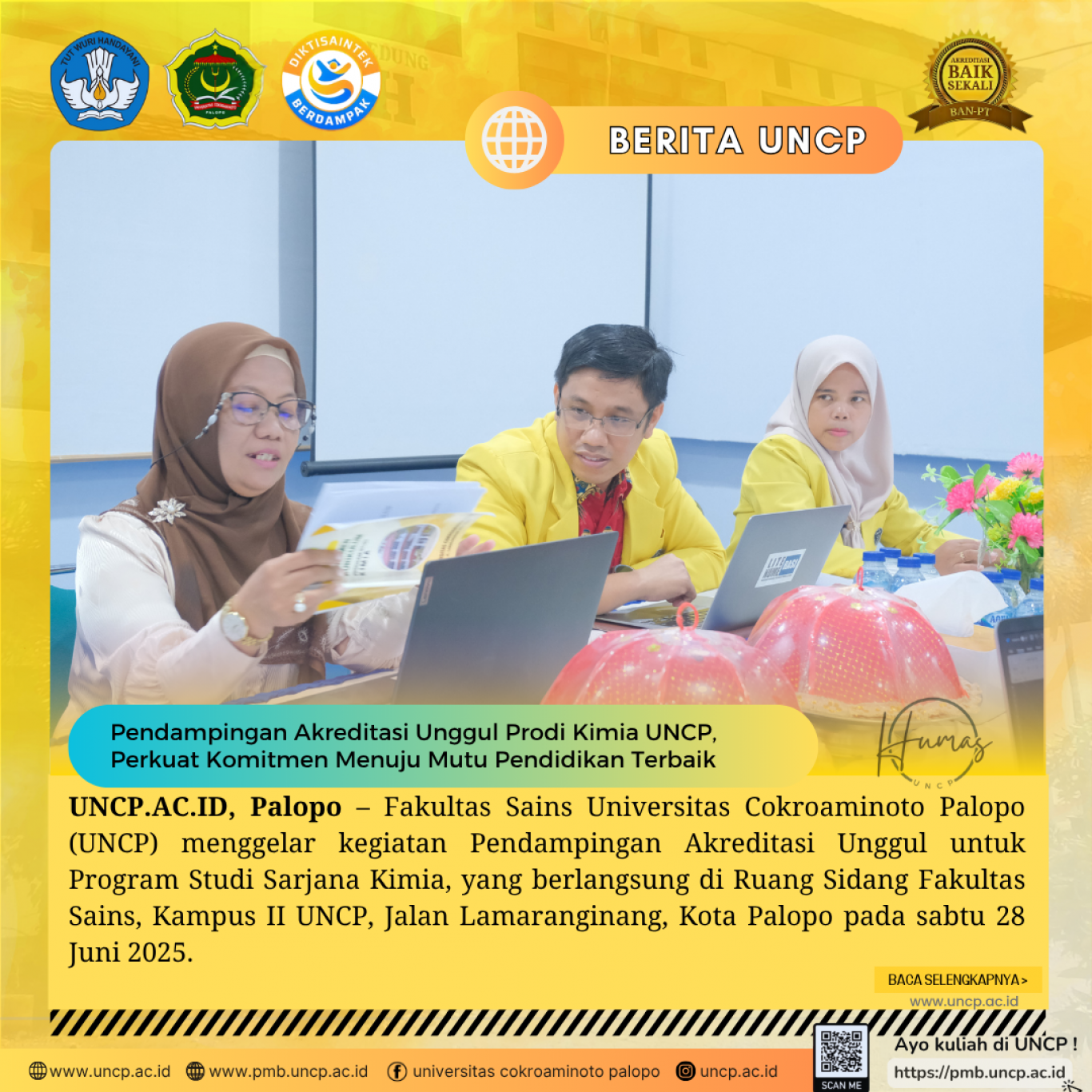 UNCP.AC.ID, Palopo – Fakultas Sains Universitas Cokroaminoto Palopo (UNCP) menggelar kegiatan Pendampingan Akreditasi Unggul untuk Program Studi Sarjana Kimia, yang…