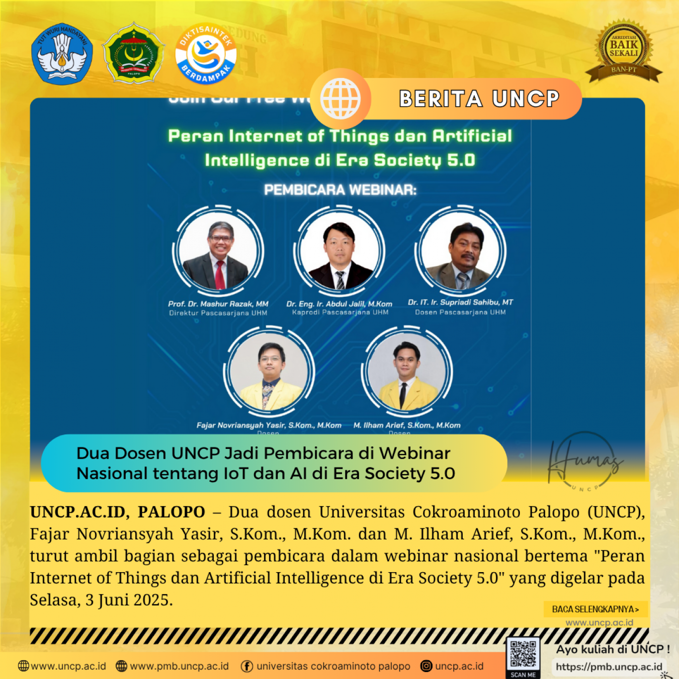 Dua Dosen UNCP Jadi Pembicara di Webinar Nasional tentang IoT dan AI di Era Society 5.0