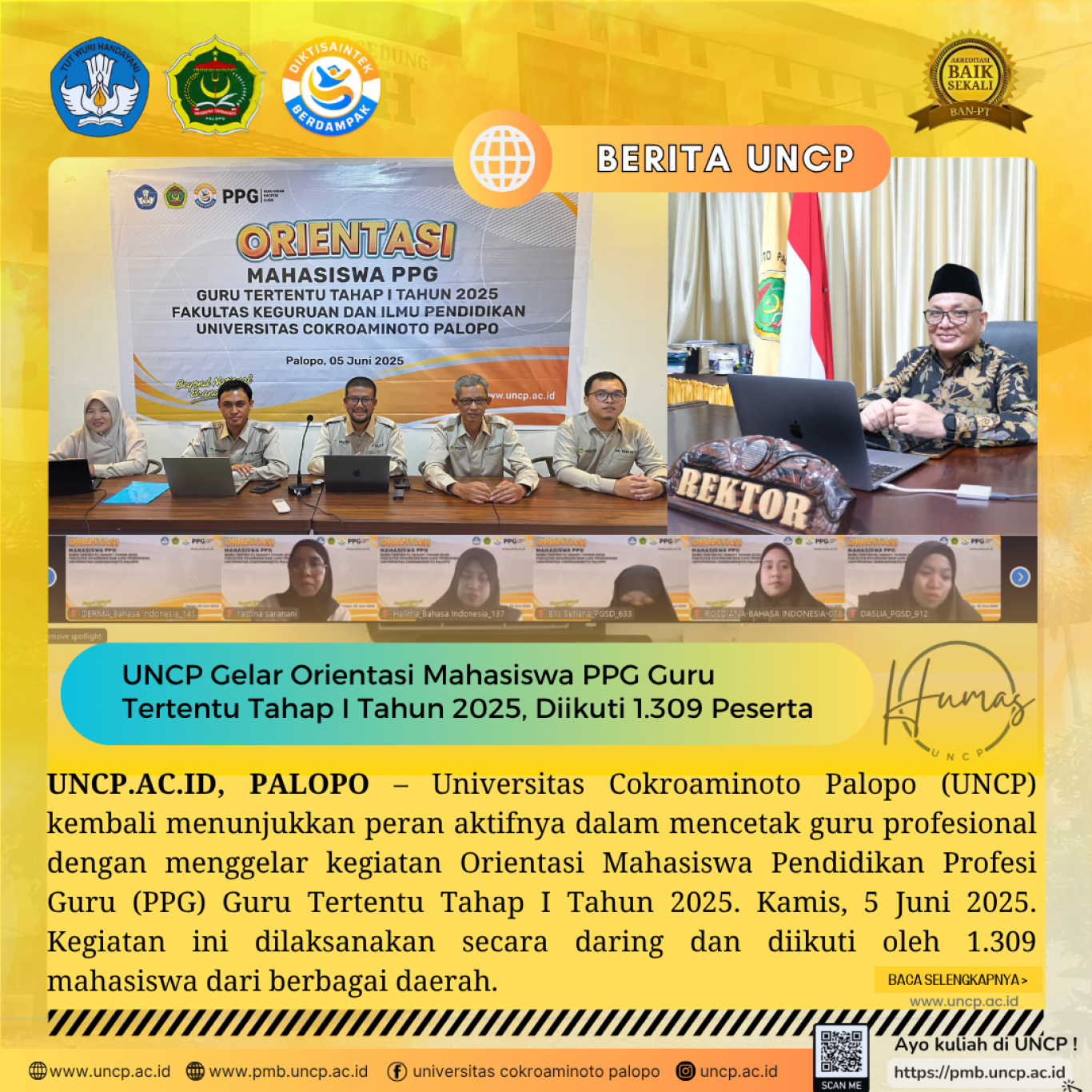 UNCP Gelar Orientasi Mahasiswa PPG Guru Tertentu Tahap I Tahun 2025, Diikuti 1.309 Peserta