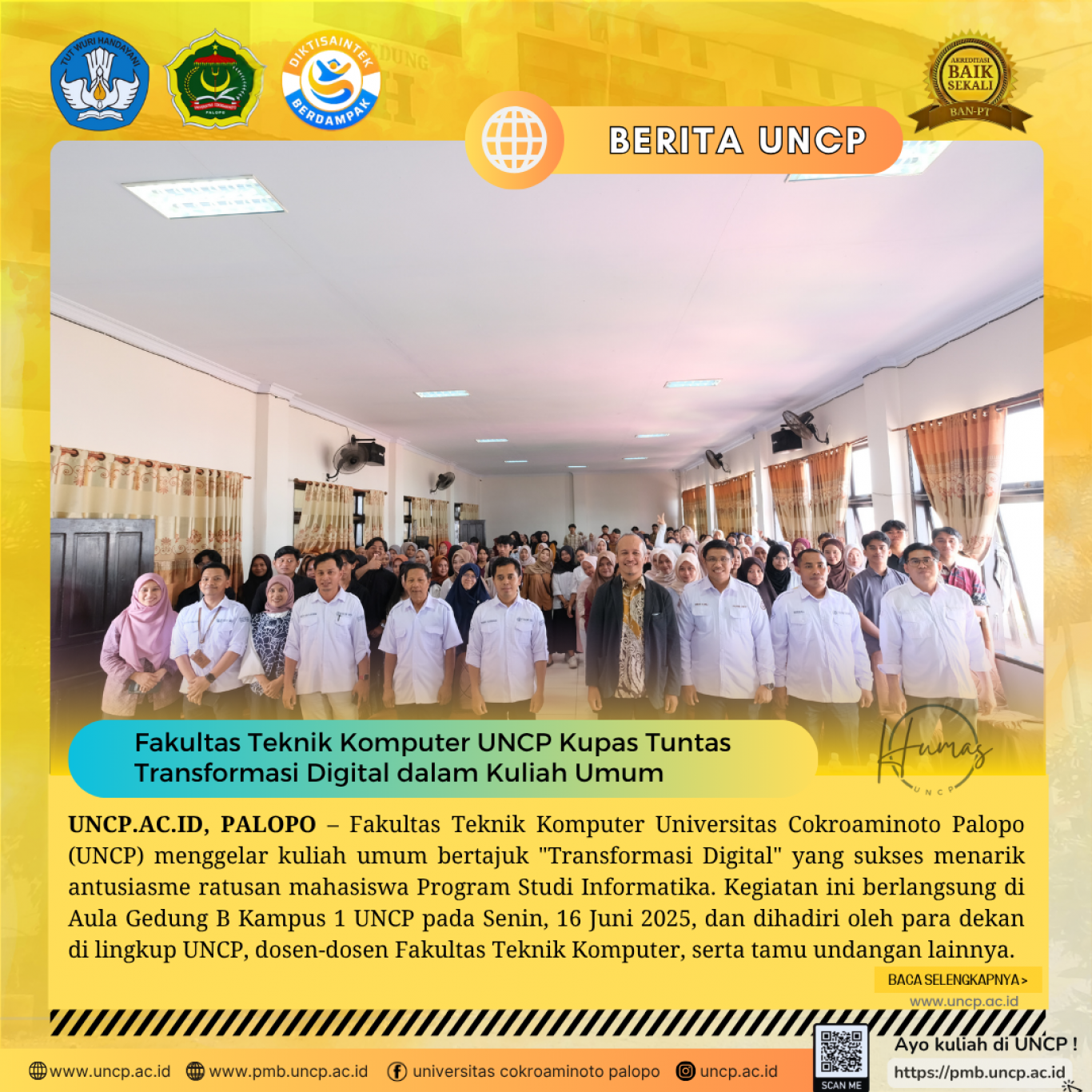 UNCP.AC.ID, PALOPO – Fakultas Teknik Komputer Universitas Cokroaminoto Palopo (UNCP) menggelar kuliah umum bertajuk "Transformasi Digital" yang sukses menarik antusiasme…