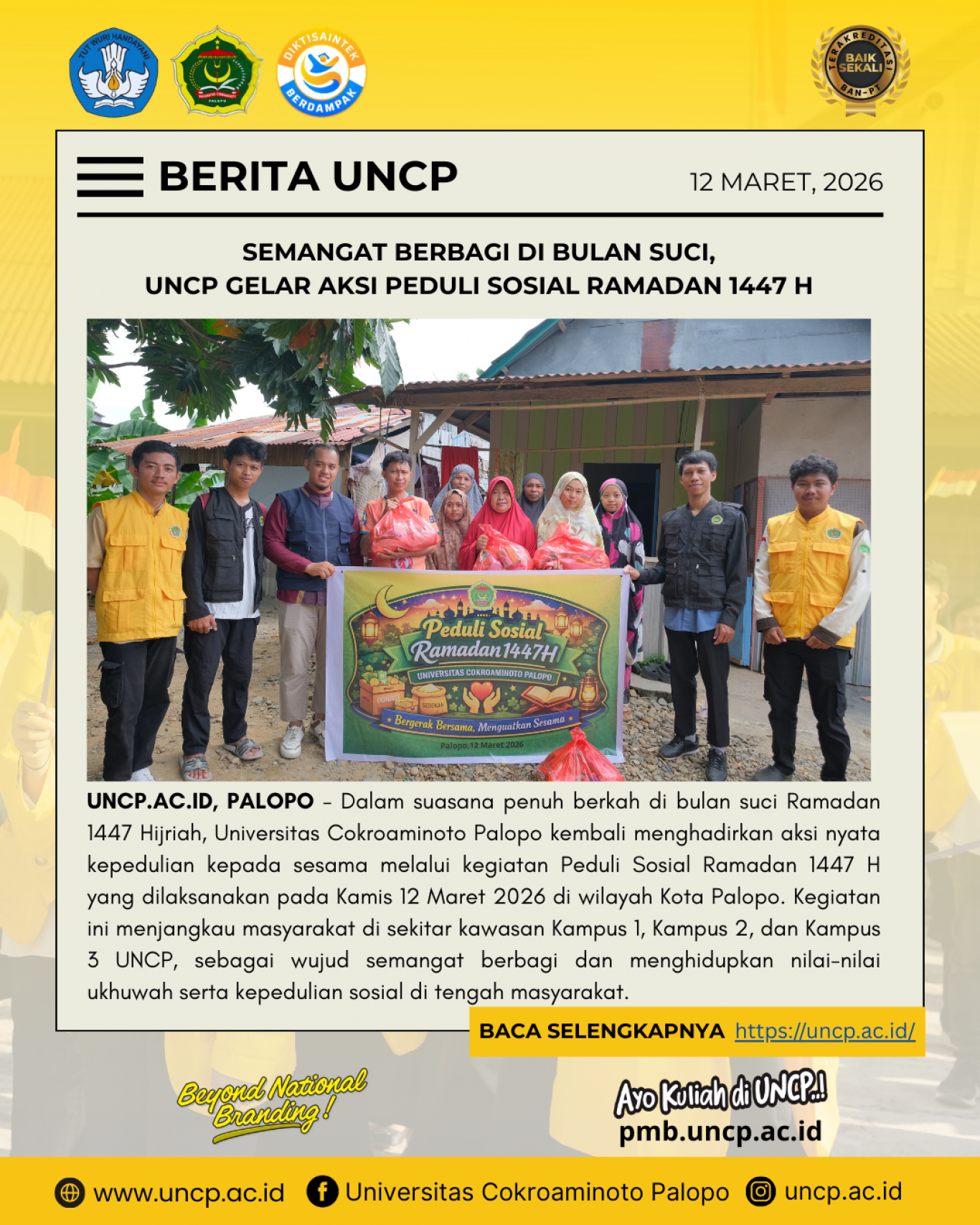 Semangat Berbagi di Bulan Suci, UNCP Gelar Aksi Peduli Sosial Ramadan 1447 H