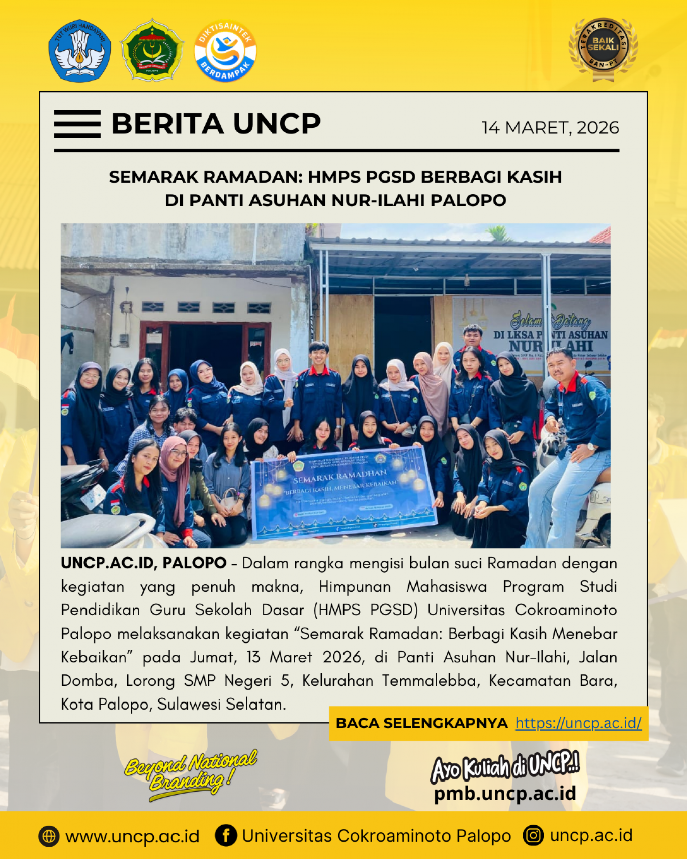 UNCP.AC.ID, PALOPO - Dalam suasana penuh berkah di bulan suci Ramadan 1447 Hijriah, Universitas Cokroaminoto Palopo kembali menghadirkan aksi nyata kepedulian…