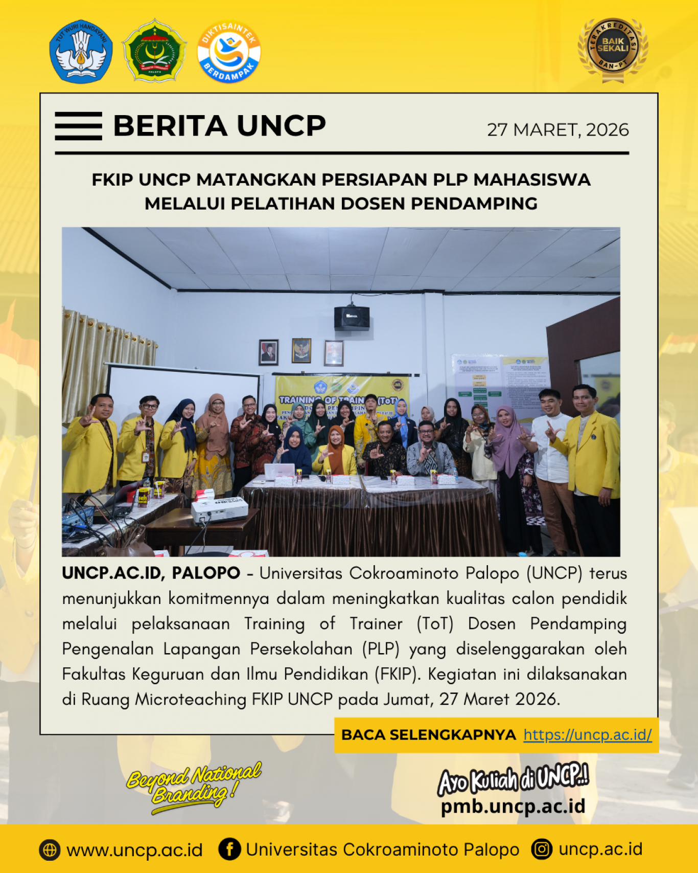 UNCP.AC.ID, PALOPO - Universitas Cokroaminoto Palopo (UNCP) terus menunjukkan komitmennya dalam meningkatkan kualitas calon pendidik melalui pelaksanaan Training of Trainer…