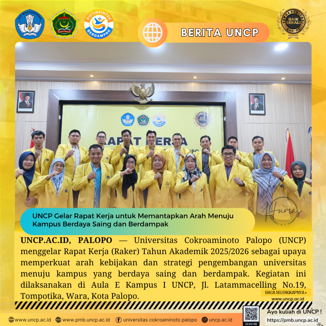 UNCP.AC.ID, PALOPO - Universitas Cokroaminoto Palopo (UNCP) menggelar Rapat Kerja (Raker) Tahun Akademik 2025/2026 sebagai upaya memperkuat arah kebijakan dan strategi…