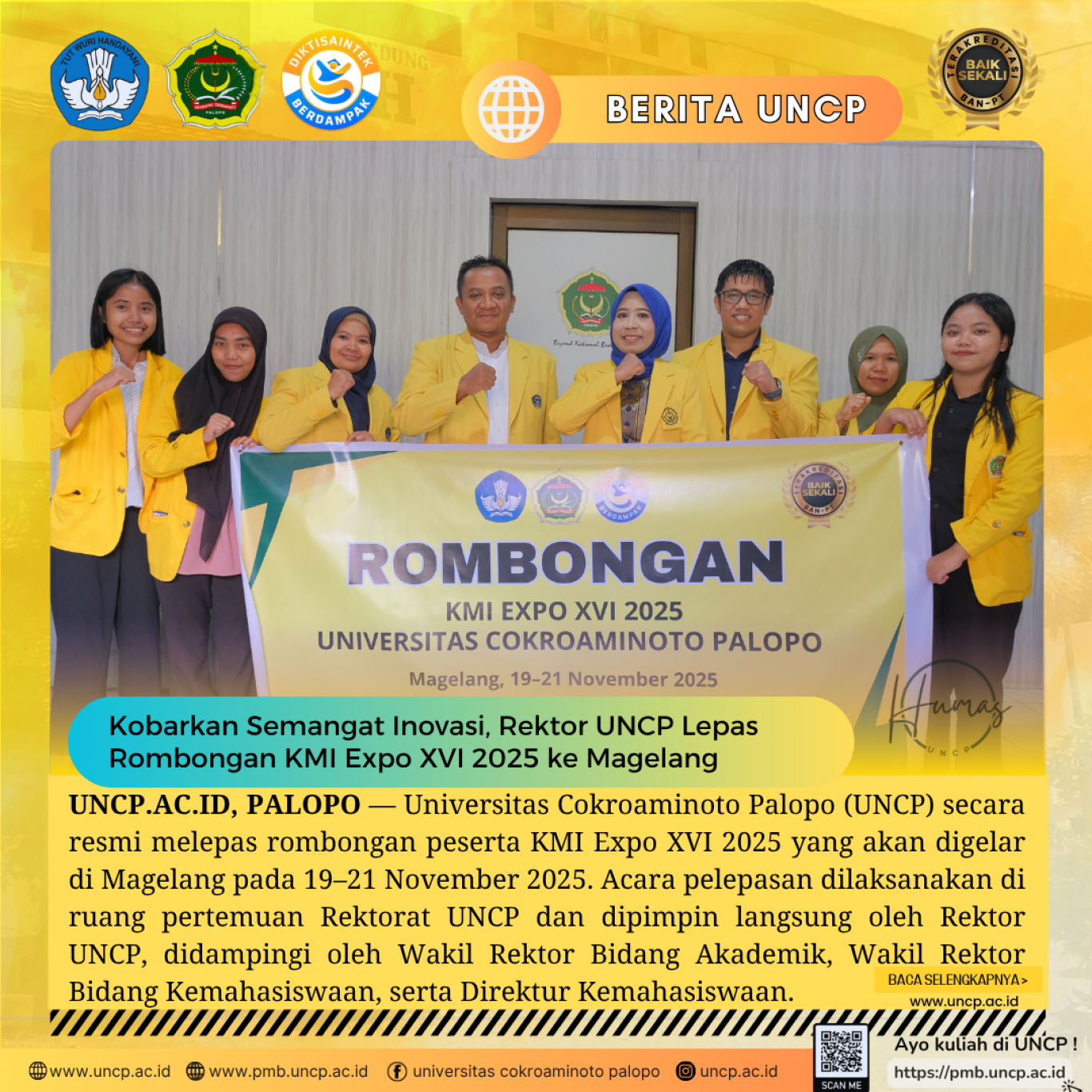 UNCP.AC.ID, PALOPO - Universitas Cokroaminoto Palopo (UNCP) secara resmi melepas rombongan peserta KMI Expo XVI 2025 yang akan digelar di Magelang…