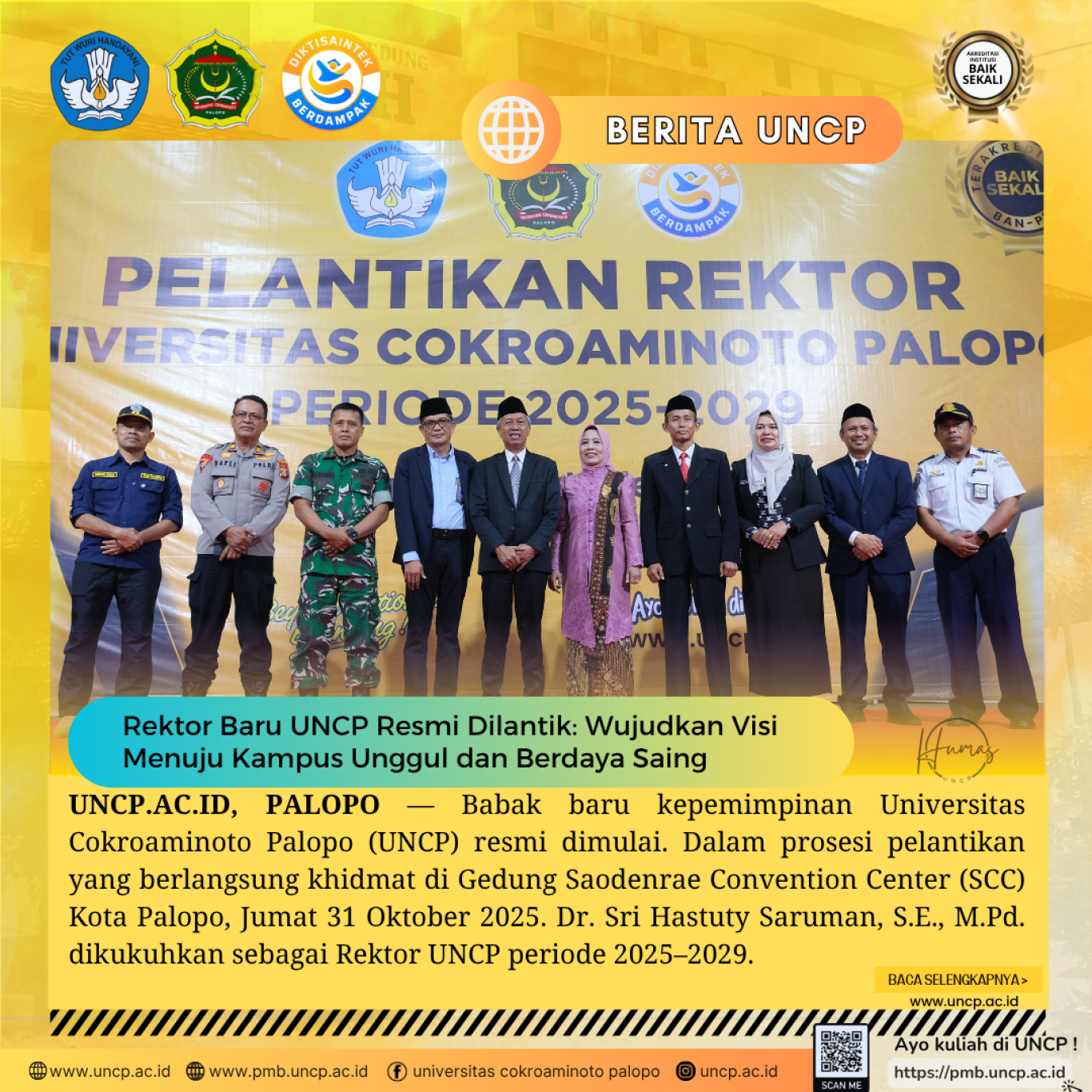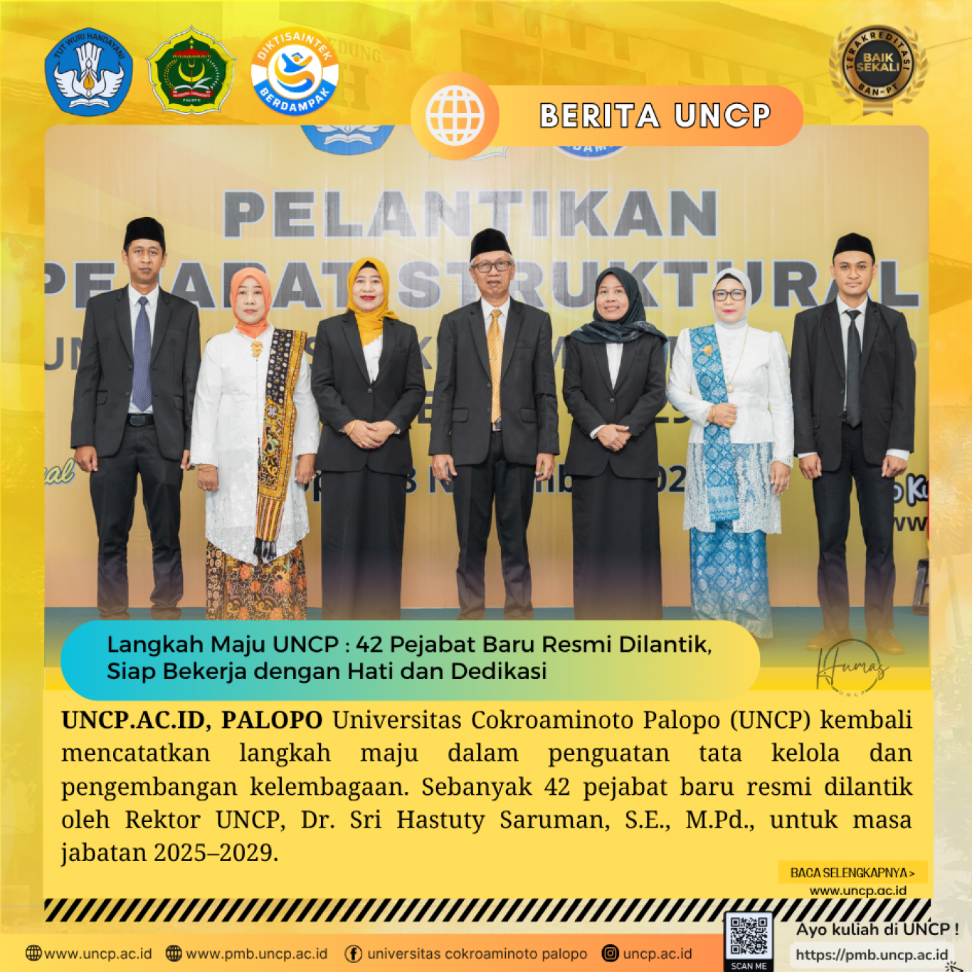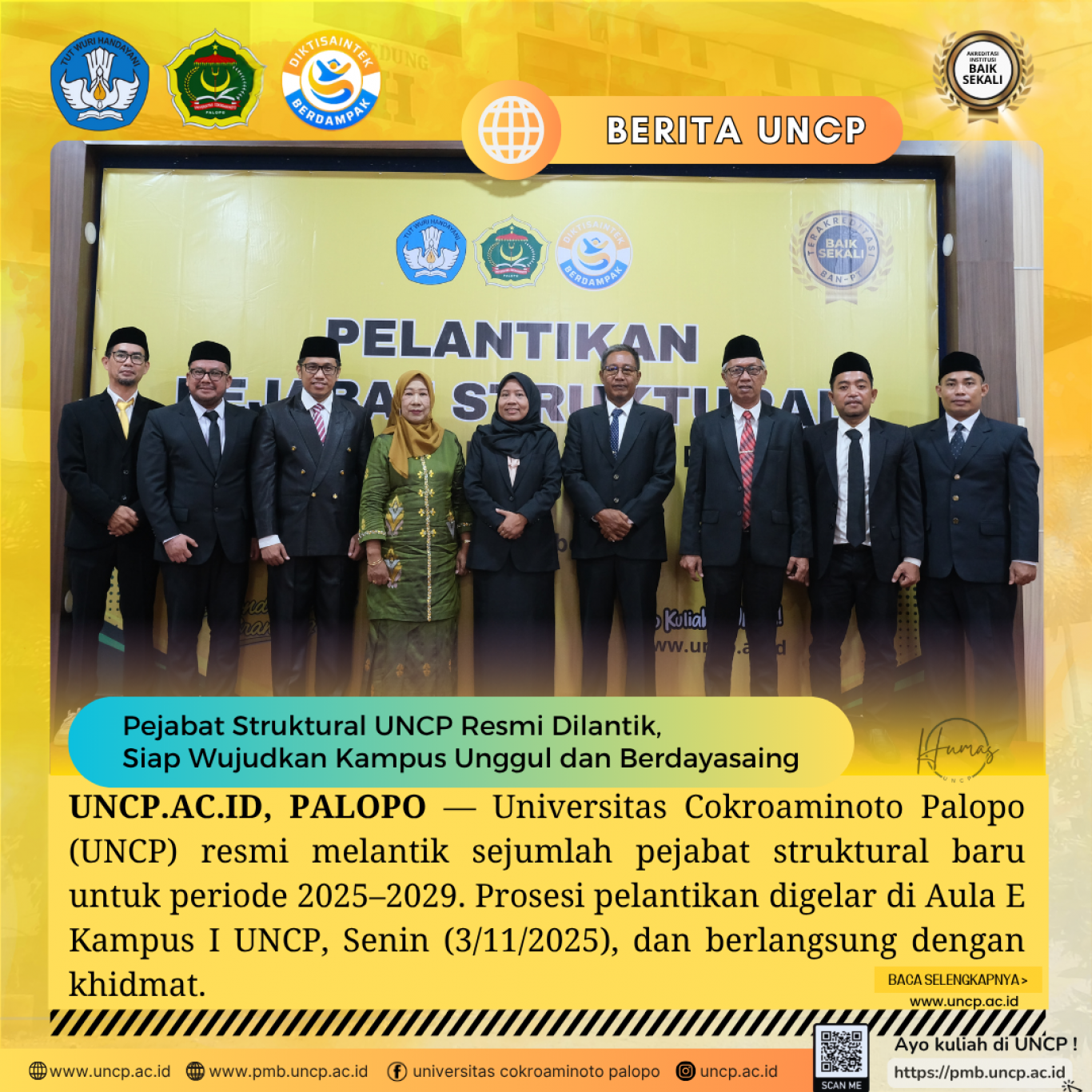 UNCP.AC.ID, PALOPO - Universitas Cokroaminoto Palopo (UNCP) resmi melantik sejumlah pejabat struktural baru untuk periode 2025–2029. Prosesi pelantikan digelar di Aula…