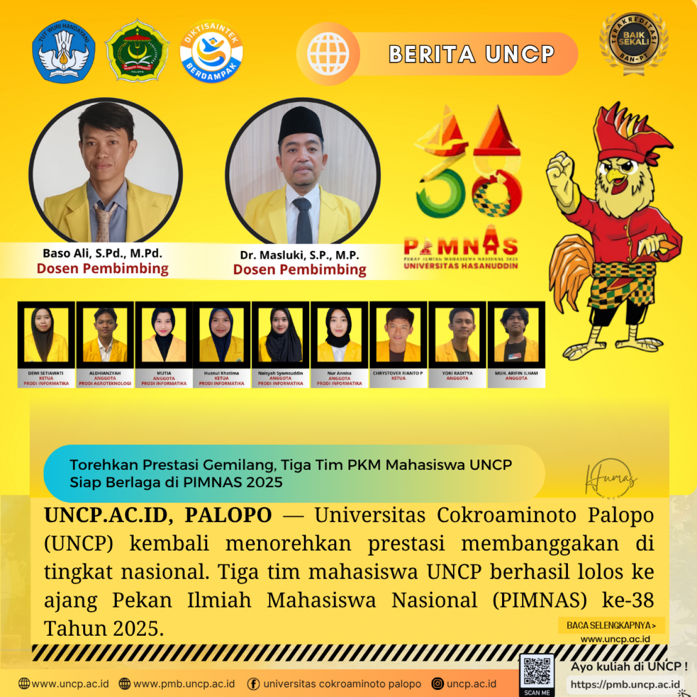 UNCP.AC.ID, PALOPO - Universitas Cokroaminoto Palopo (UNCP) kembali menorehkan prestasi membanggakan di tingkat nasional. Tiga tim mahasiswa UNCP berhasil lolos ke…