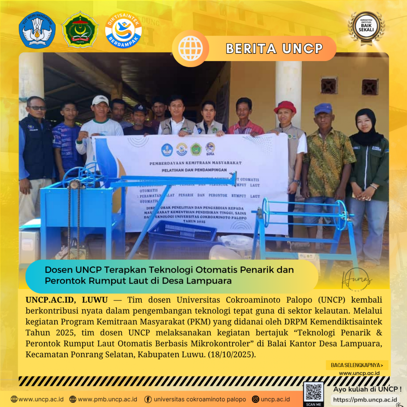 UNCP.AC.ID, LUWU - Tim dosen Universitas Cokroaminoto Palopo (UNCP) kembali berkontribusi nyata dalam pengembangan teknologi tepat guna di sektor kelautan. Melalui…