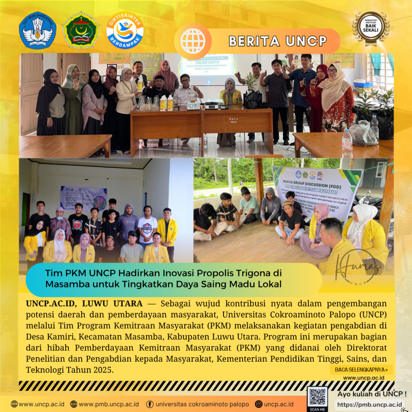 Tim PKM UNCP Hadirkan Inovasi Propolis Trigona di Masamba untuk Tingkatkan Daya Saing Madu Lokal