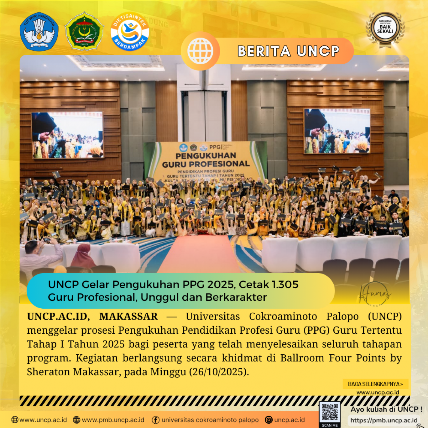 UNCP.AC.ID, MAKASSAR - Universitas Cokroaminoto Palopo (UNCP) menggelar prosesi Pengukuhan Pendidikan Profesi Guru (PPG) Guru Tertentu Tahap I Tahun 2025 bagi…