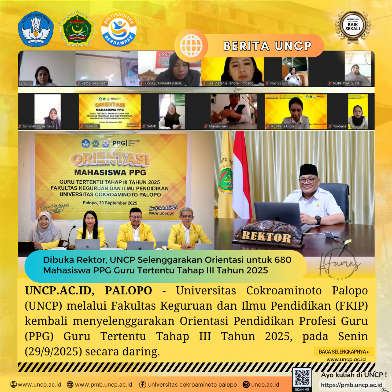 UNCP.AC.ID, PALOPO - Universitas Cokroaminoto Palopo (UNCP) melalui Fakultas Keguruan dan Ilmu Pendidikan (FKIP) kembali menyelenggarakan Orientasi Pendidikan Profesi Guru (PPG)…