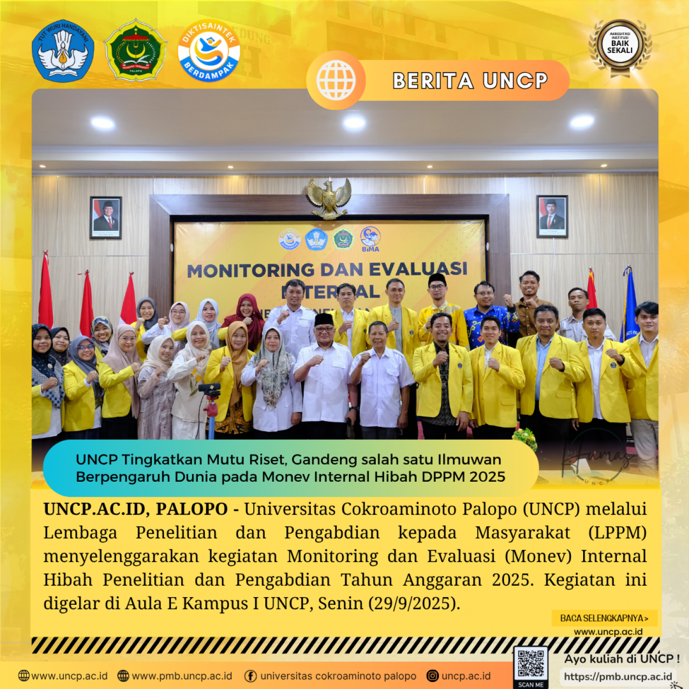 UNCP Tingkatkan Mutu Riset, Gandeng salah satu Ilmuwan Berpengaruh Dunia pada Monev Hibah DPPM 2025