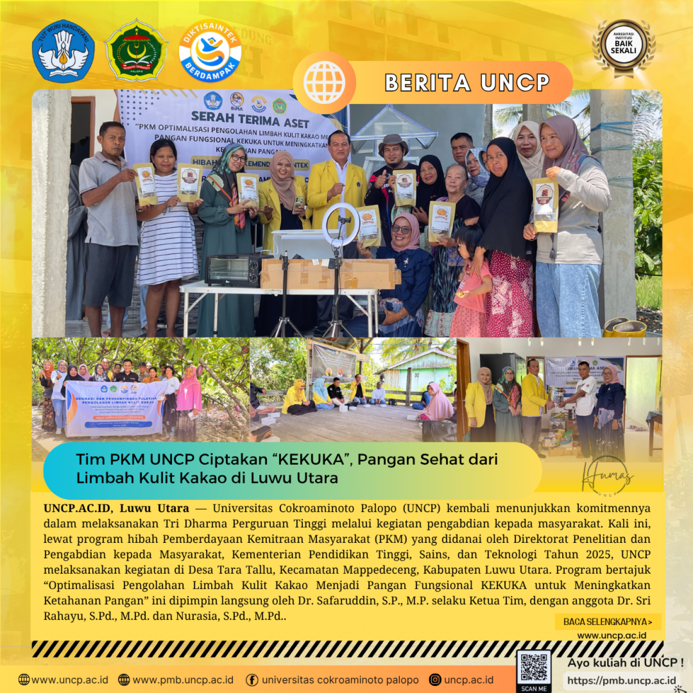 Tim PKM UNCP Ciptakan “KEKUKA”, Pangan Sehat dari Limbah Kulit Kakao di Luwu Utara