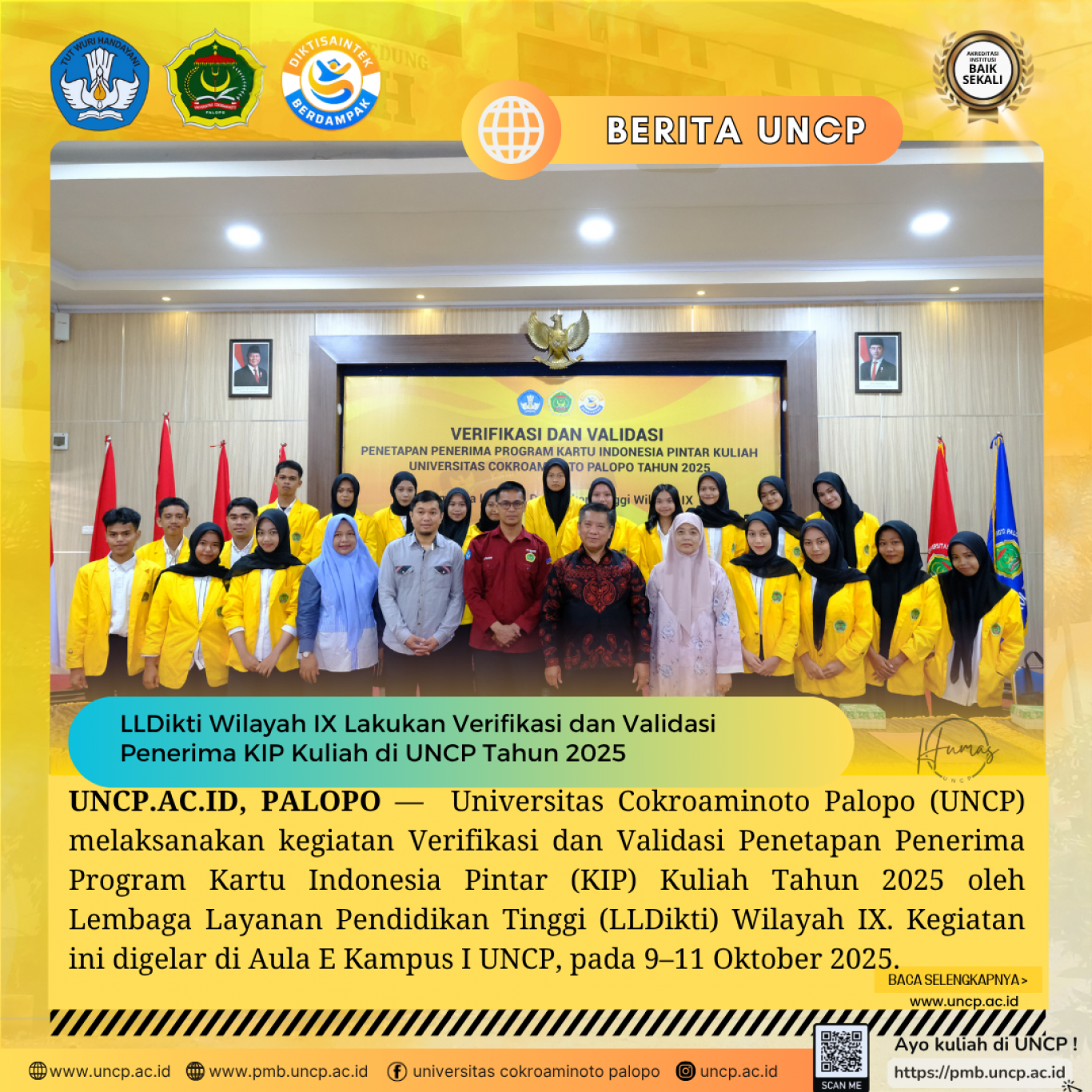 UNCP.AC.ID, PALOPO - Universitas Cokroaminoto Palopo (UNCP) melaksanakan kegiatan Verifikasi dan Validasi Penetapan Penerima Program Kartu Indonesia Pintar (KIP) Kuliah Tahun…