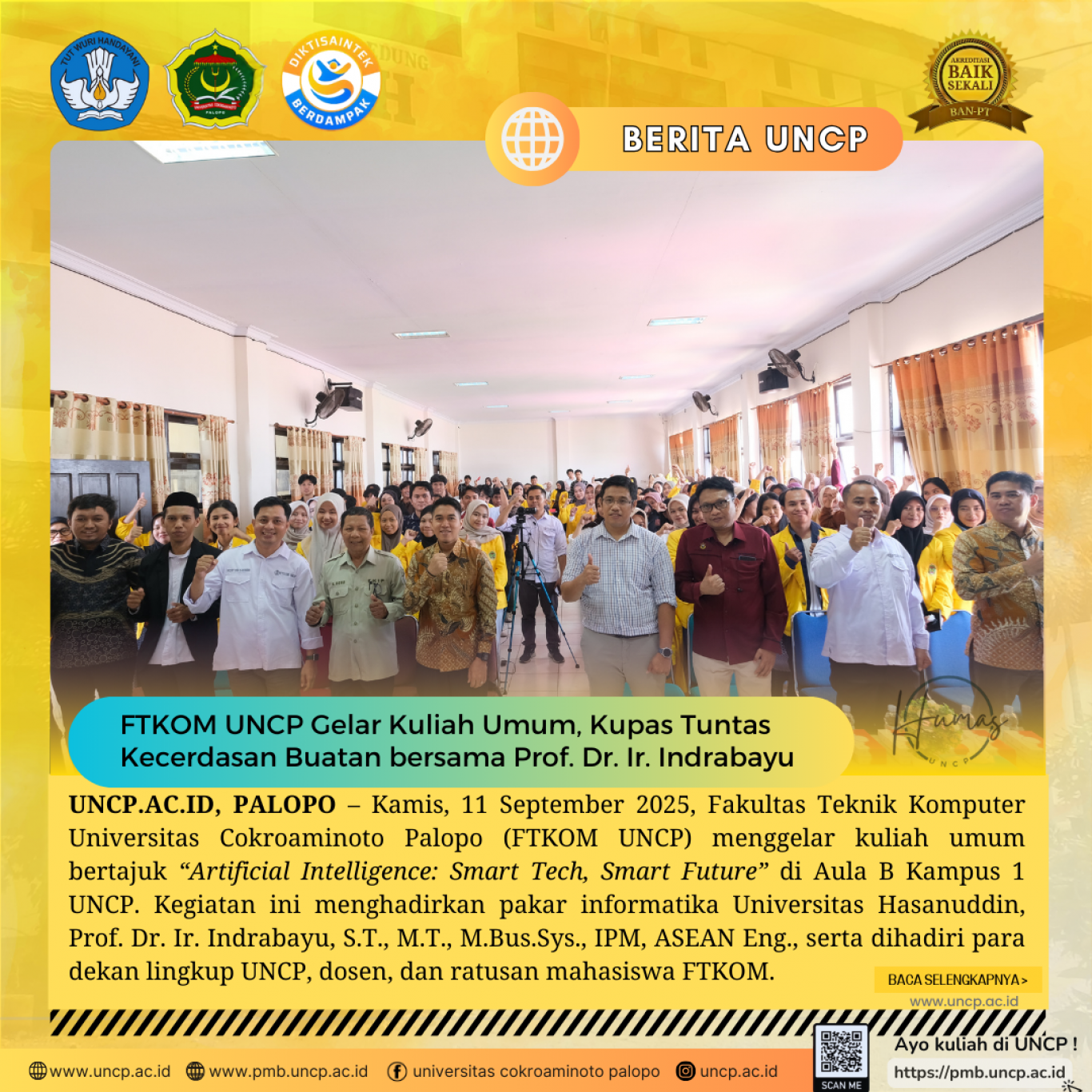 UNCP.AC.ID, PALOPO - Kamis 11 September 2025, Fakultas Teknik Komputer Universitas Cokroaminoto Palopo (FTKOM UNCP) menggelar kuliah umum bertajuk “Artificial Intelligence:…