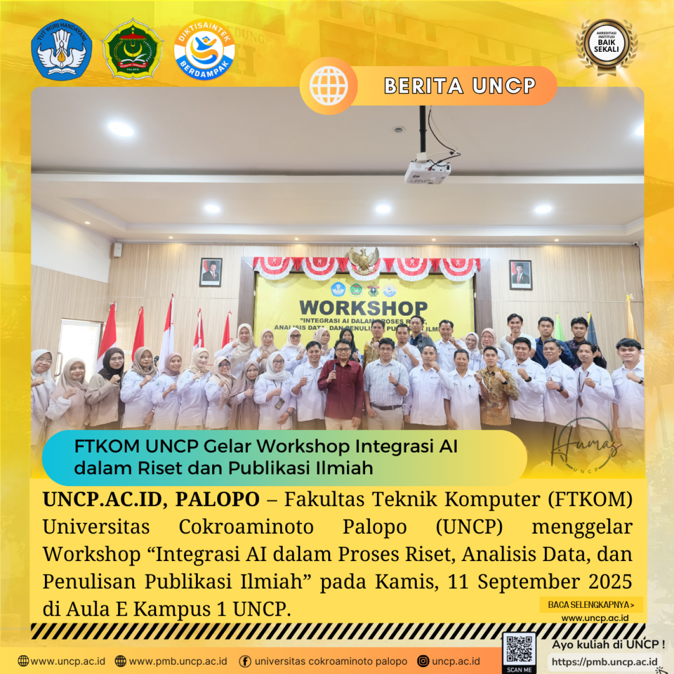 UNCP.AC.ID, PALOPO - Fakultas Teknik Komputer (FTKOM) Universitas Cokroaminoto Palopo (UNCP) menggelar Workshop “Integrasi AI dalam Proses Riset, Analisis Data, dan…