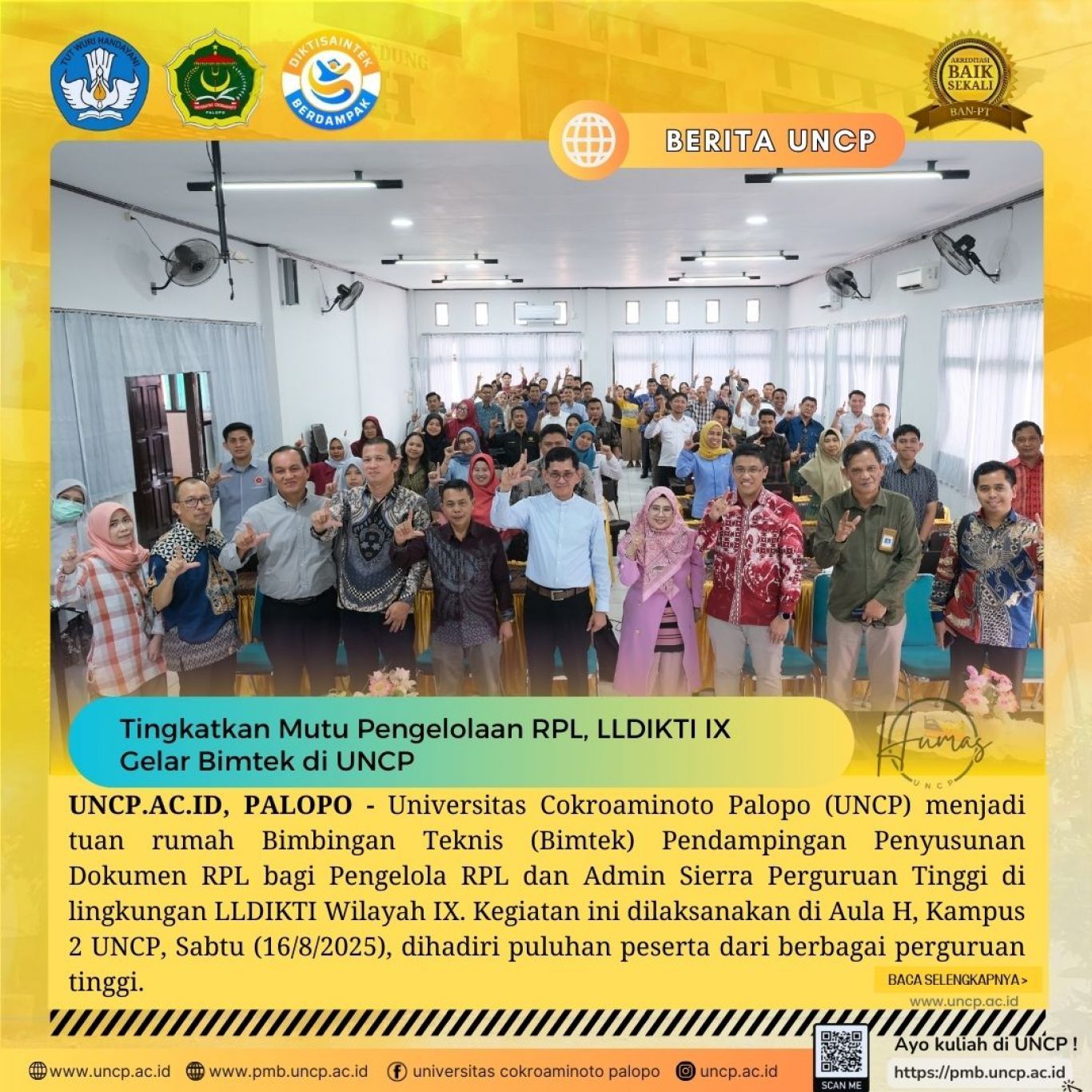 UNCP.AC.ID, PALOPO - Universitas Cokroaminoto Palopo (UNCP) menjadi tuan rumah Bimbingan Teknis (Bimtek) Pendampingan Penyusunan Dokumen RPL bagi Pengelola RPL dan…