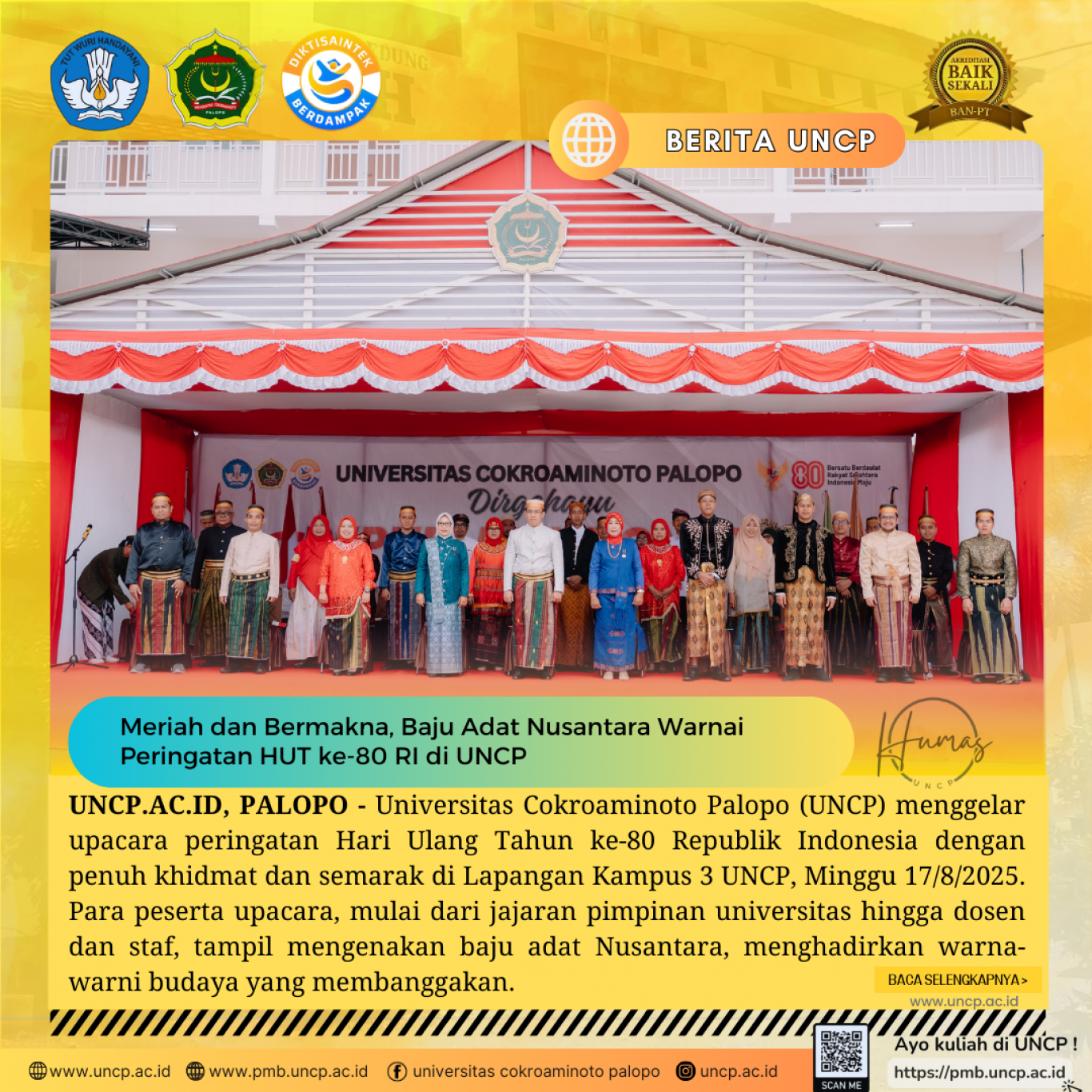 UNCP.AC.ID, PALOPO - Universitas Cokroaminoto Palopo (UNCP) menggelar upacara peringatan Hari Ulang Tahun ke-80 Republik Indonesia dengan penuh khidmat dan…