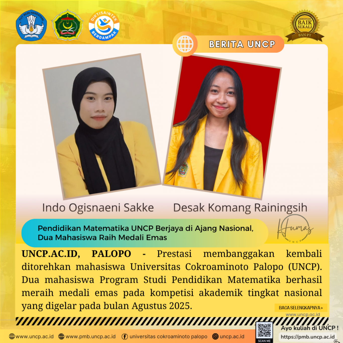 Pendidikan Matematika UNCP Berjaya di Ajang Nasional, Dua Mahasiswa Raih Medali Emas