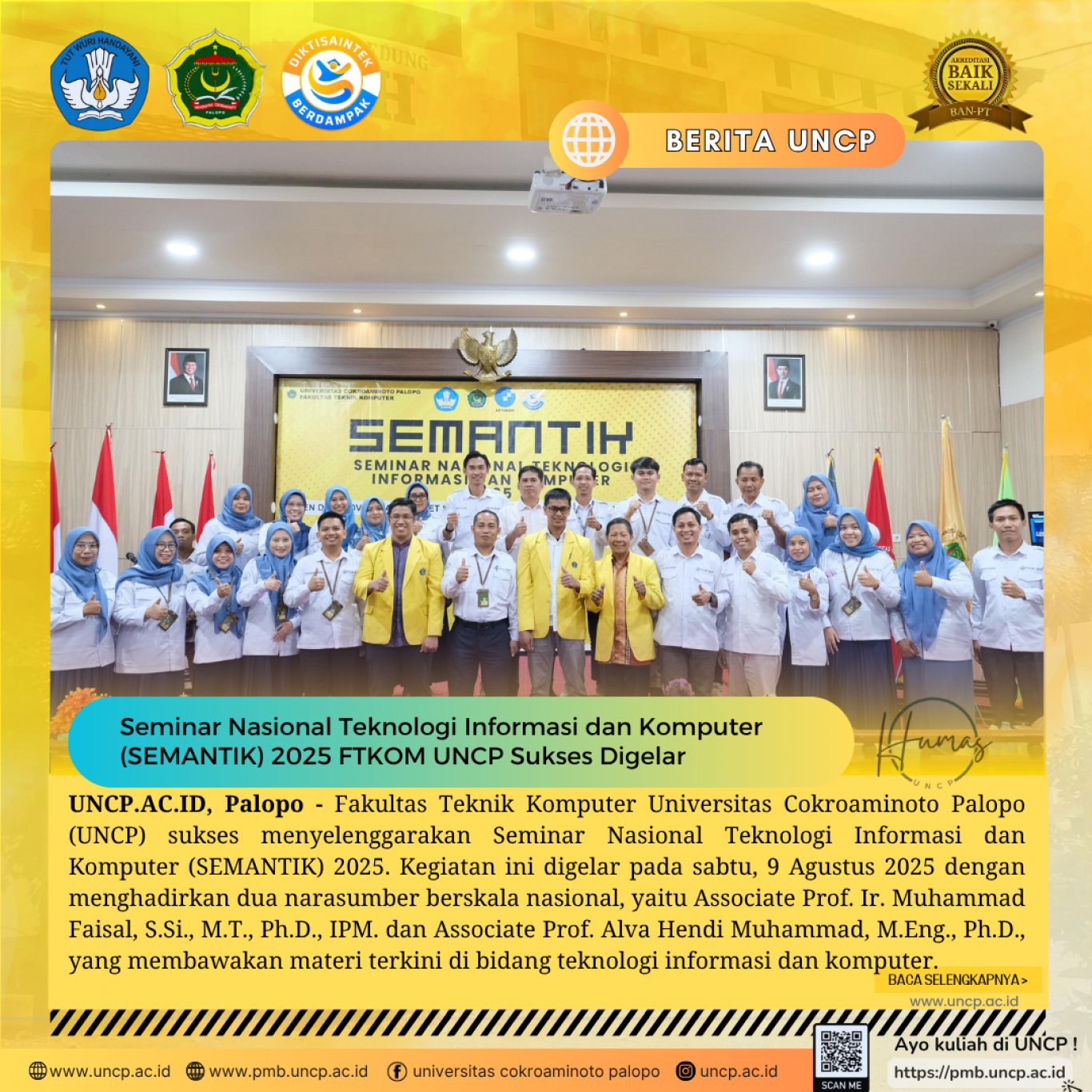 UNCP.AC.ID, Palopo – Fakultas Teknik Komputer Universitas Cokroaminoto Palopo (UNCP) sukses menyelenggarakan Seminar Nasional Teknologi Informasi dan Komputer (SEMANTIK) 2025.…