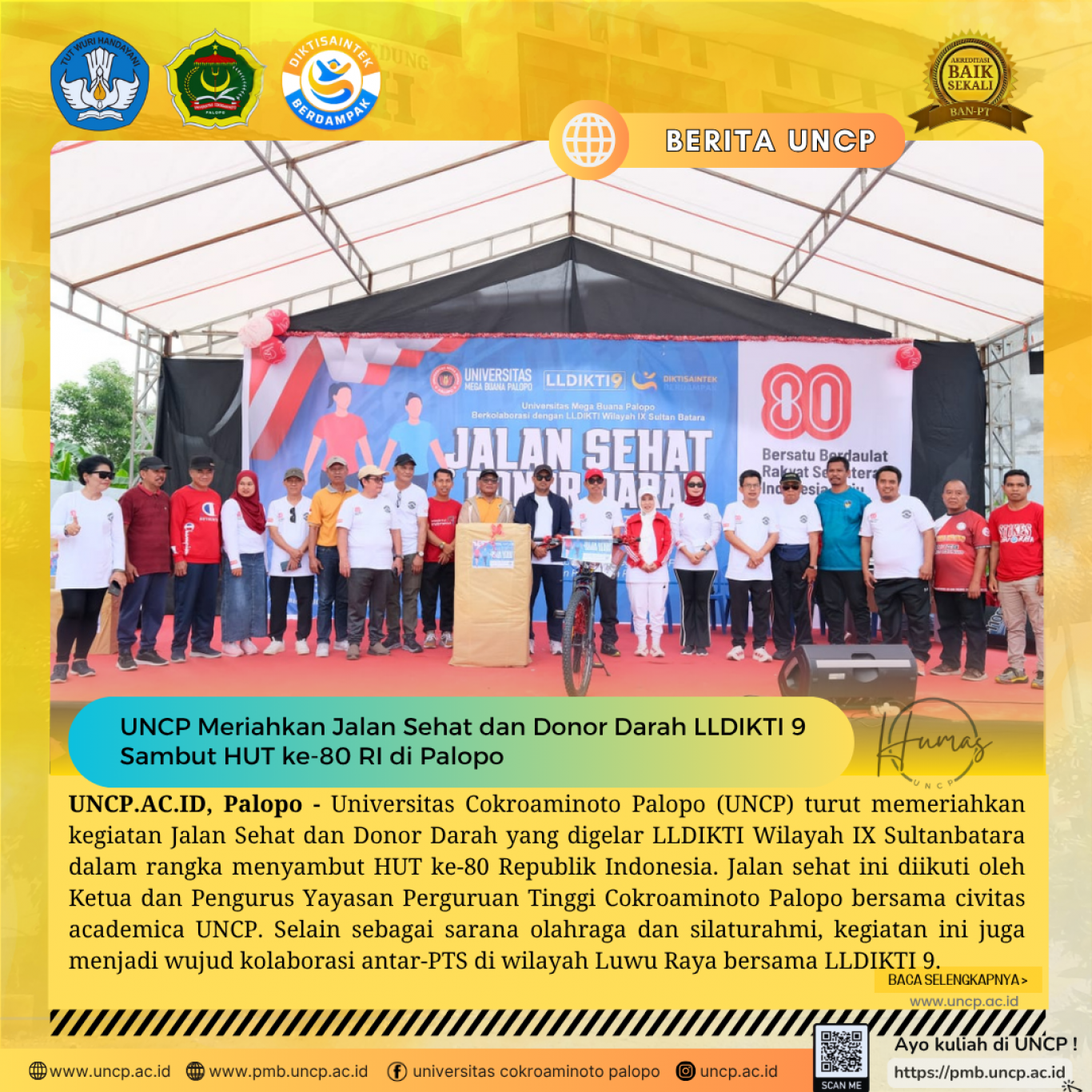 UNCP Meriahkan Jalan Sehat dan Donor Darah LLDIKTI 9 Sambut HUT ke-80 RI di Palopo