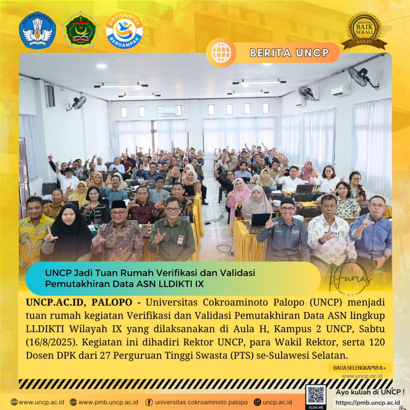 UNCP.AC.ID, PALOPO - Universitas Cokroaminoto Palopo (UNCP) menjadi tuan rumah kegiatan Verifikasi dan Validasi Pemutakhiran Data ASN lingkup LLDIKTI Wilayah…