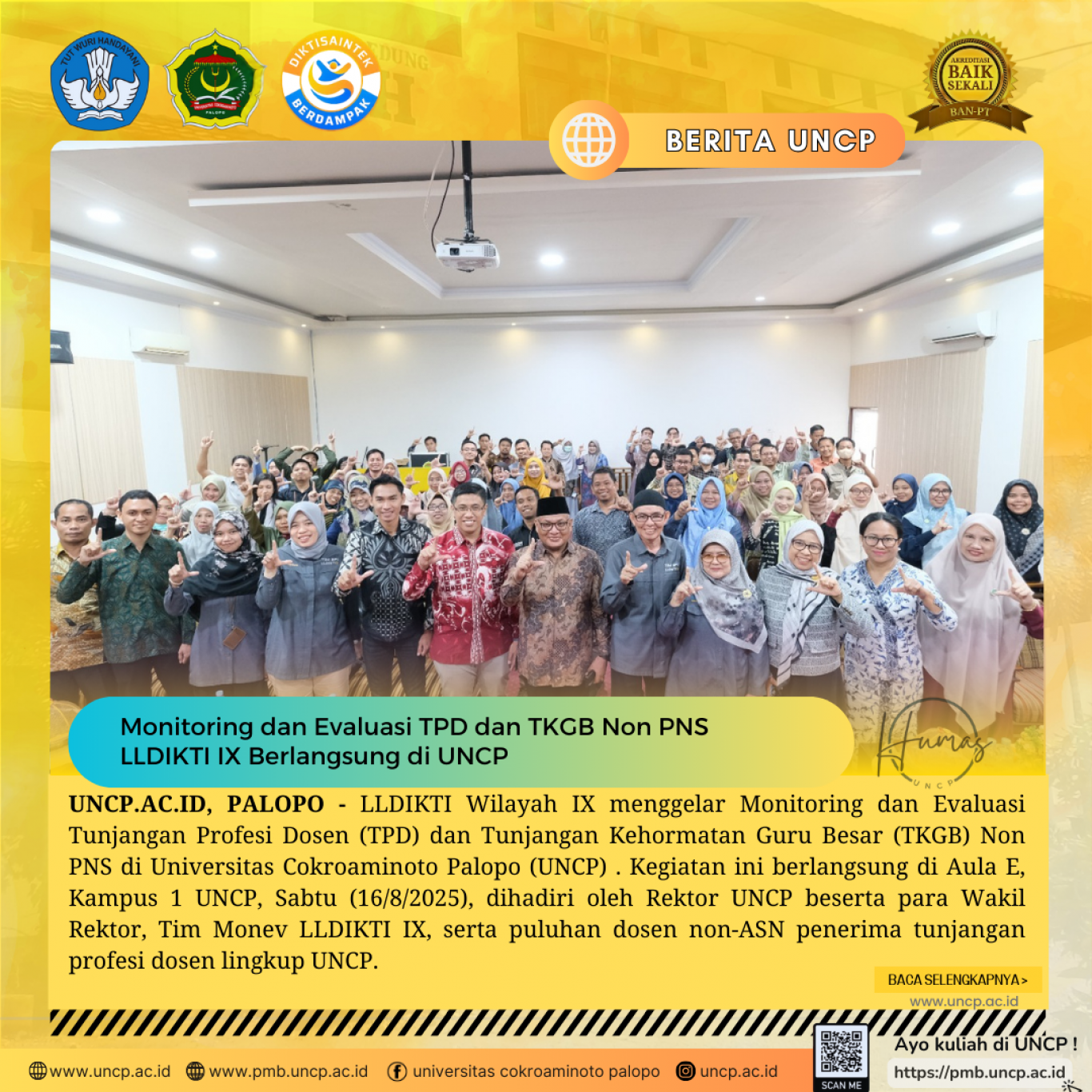 UNCP.AC.ID, PALOPO - LLDIKTI Wilayah IX menggelar Monitoring dan Evaluasi Tunjangan Profesi Dosen (TPD) dan Tunjangan Kehormatan Guru Besar (TKGB) Non…