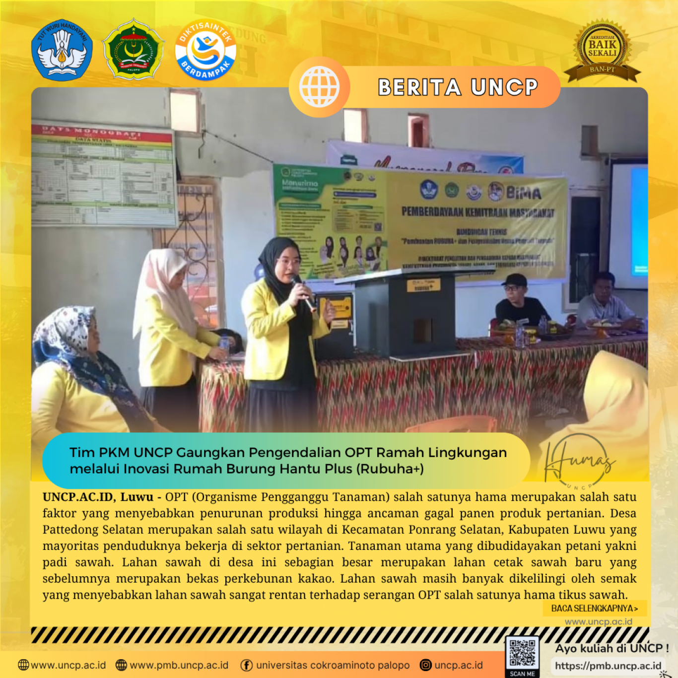 TIM PKM UNCP Gaungkan Pengendalian OPT Ramah Lingkungan melalui Inovasi Rumah Burung Hantu Plus