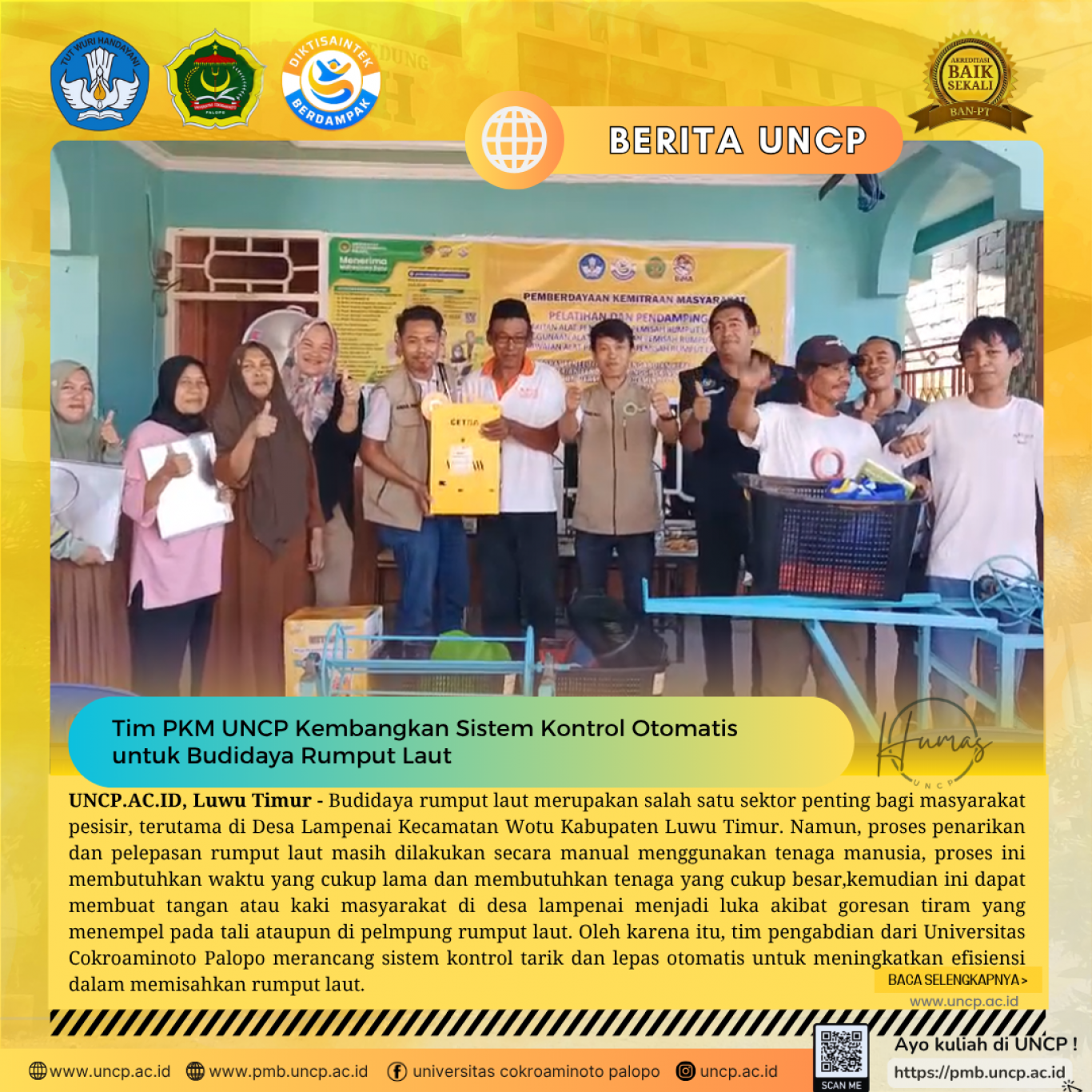 UNCP.AC.ID, Luwu Timur - Budidaya rumput laut merupakan salah satu sektor penting bagi masyarakat pesisir, terutama di Desa Lampenai Kecamatan…