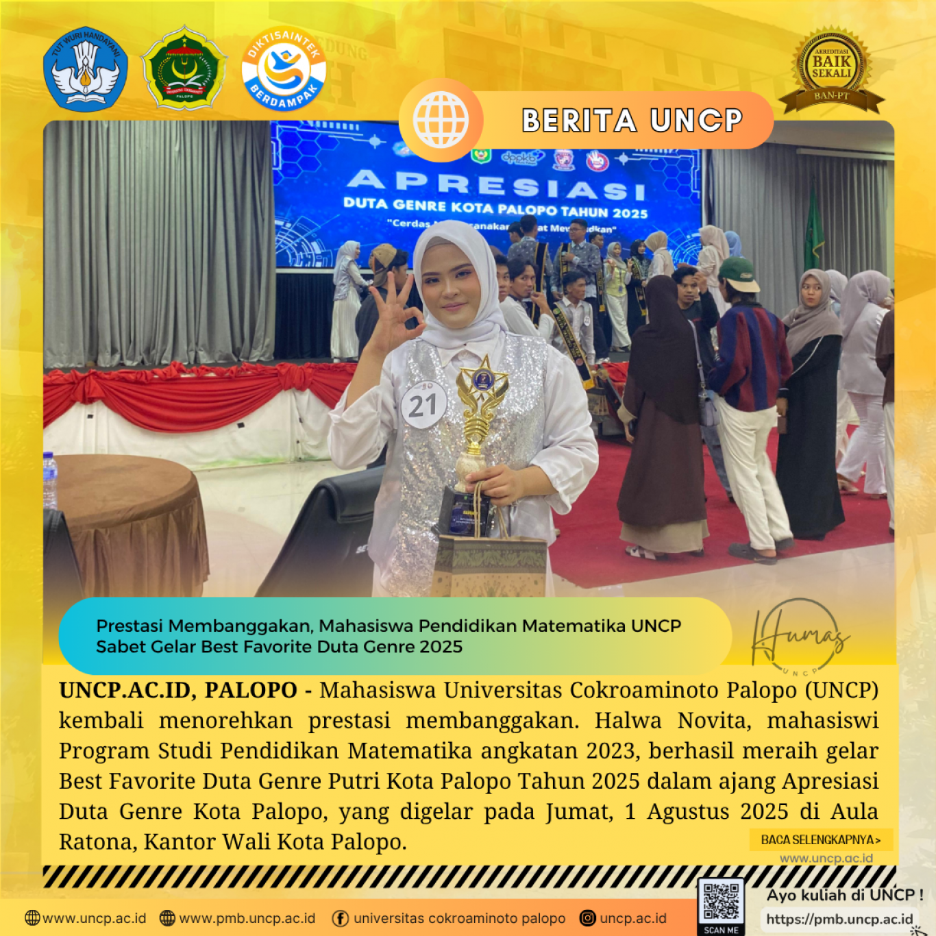 Prestasi Membanggakan,Mahasiswa Pendidikan Matematika UNCP Sabet Gelar Best Favorite Duta Genre 2025