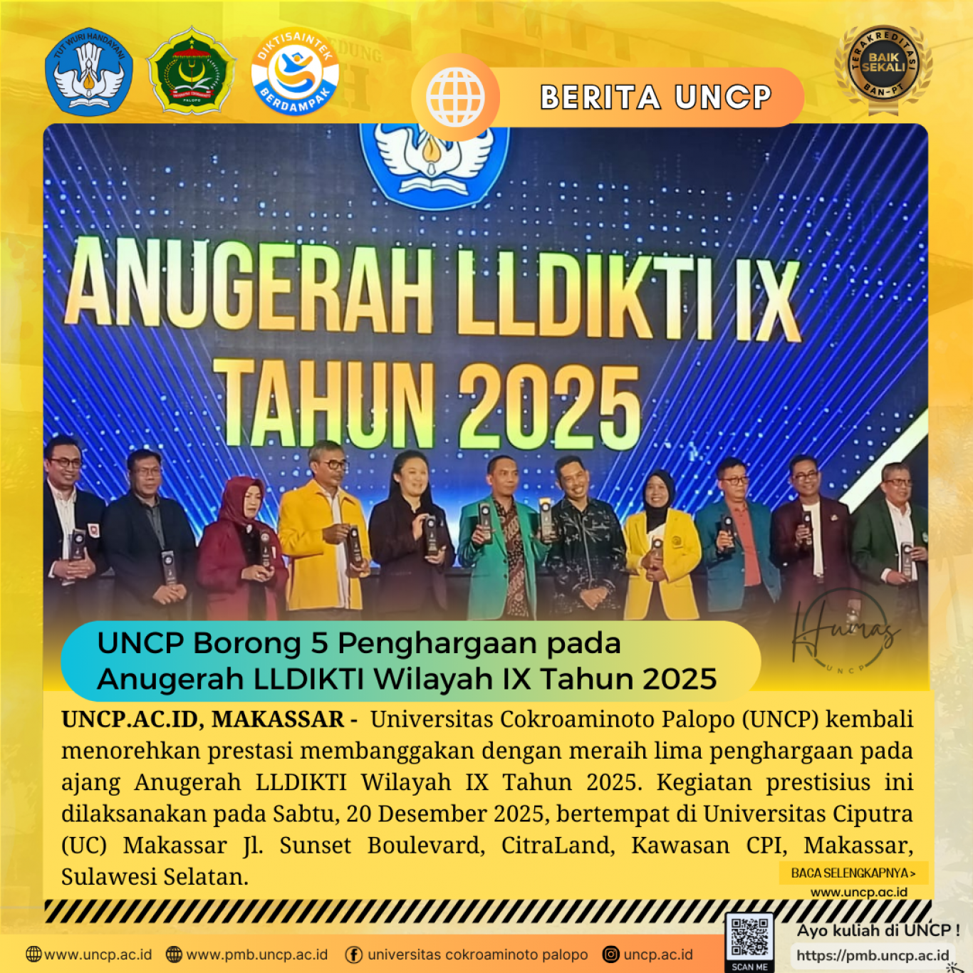 UNCP Borong 5 Penghargaan pada Anugerah LLDIKTI Wilayah IX Tahun 2025