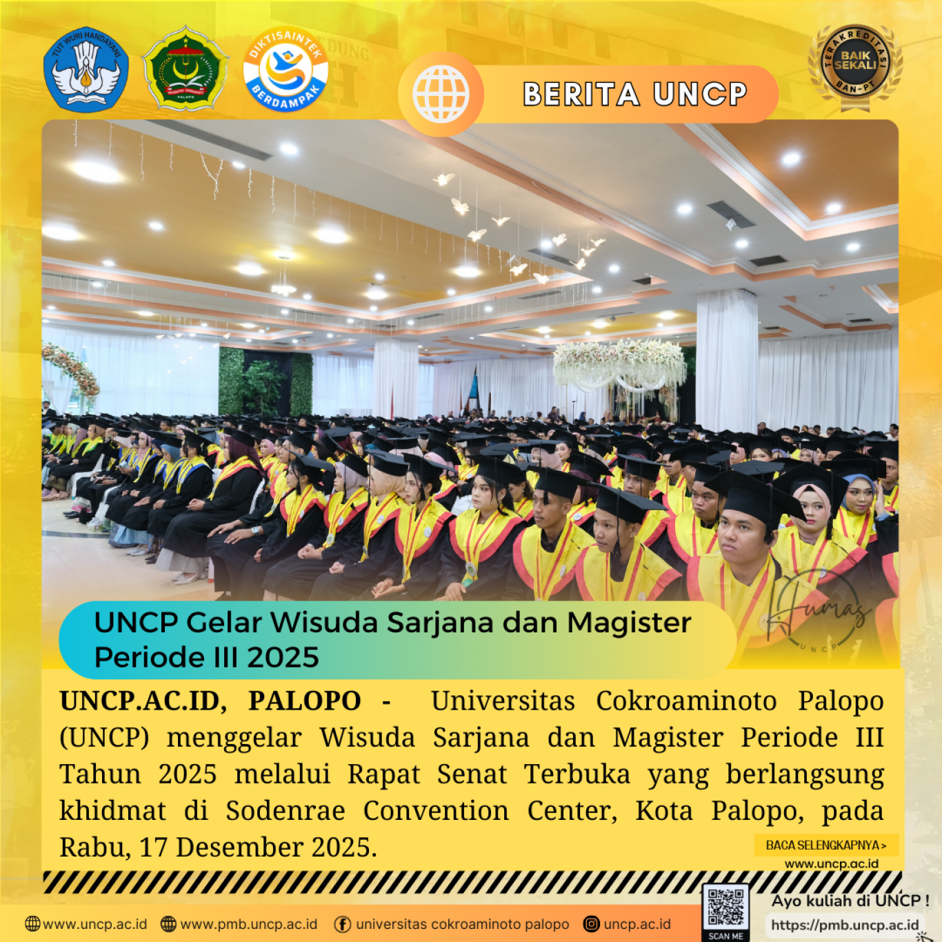 UNCP.AC.ID, PALOPO - Universitas Cokroaminoto Palopo (UNCP) menggelar Wisuda Sarjana dan Magister Periode III Tahun 2025 melalui Rapat Senat Terbuka yang…
