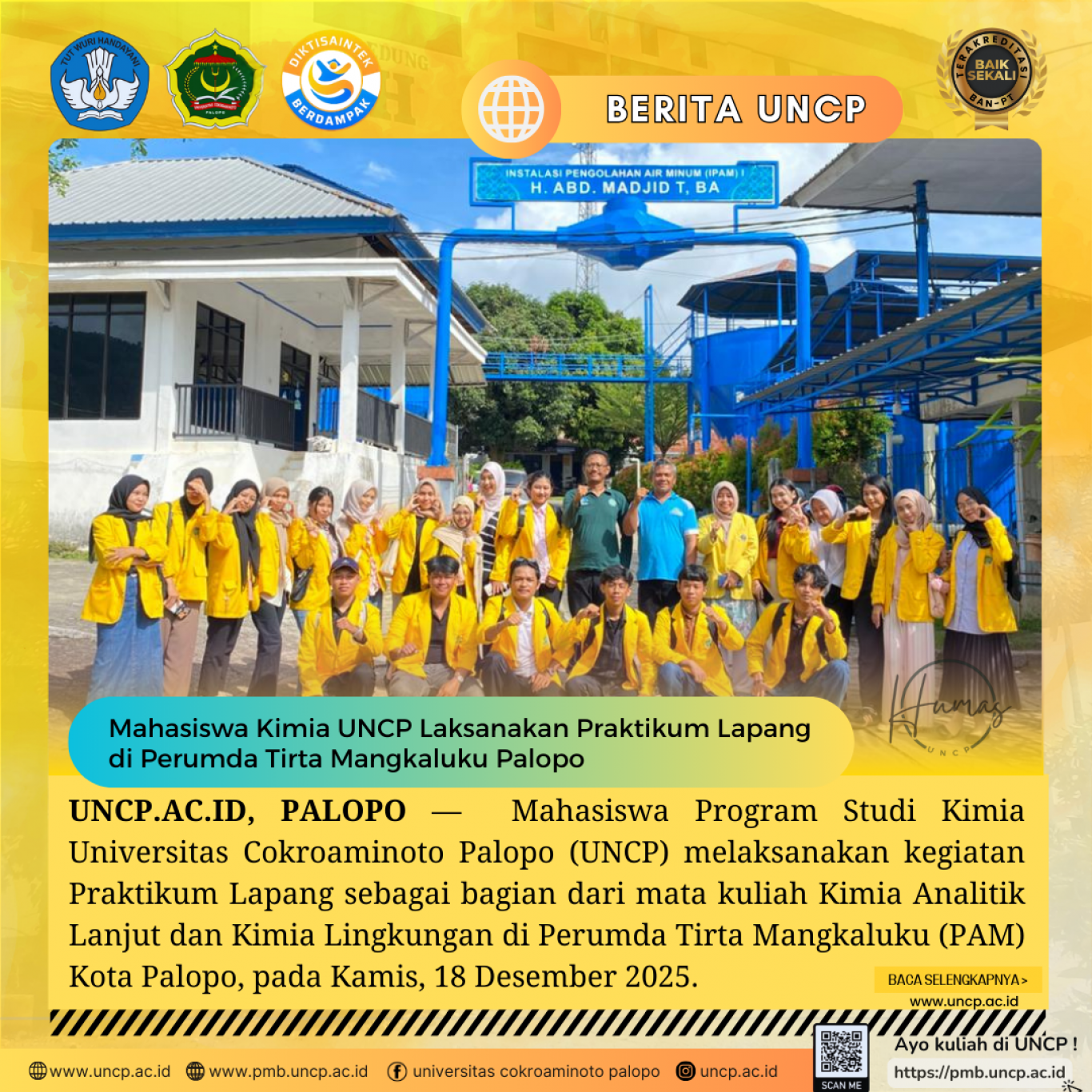 UNCP.AC.ID, PALOPO — Mahasiswa Program Studi Kimia Universitas Cokroaminoto Palopo (UNCP) melaksanakan kegiatan Praktikum Lapang sebagai bagian dari mata kuliah Kimia…