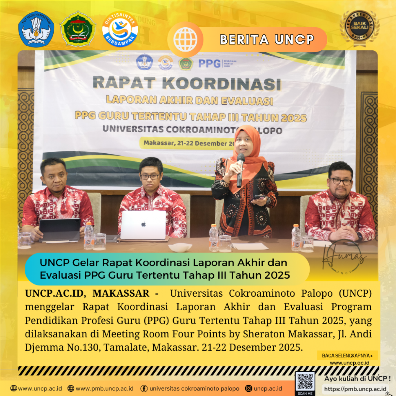 UNCP.AC.ID, MAKASSAR - Universitas Cokroaminoto Palopo (UNCP) menggelar Rapat Koordinasi Laporan Akhir dan Evaluasi Program Pendidikan Profesi Guru (PPG) Guru Tertentu…