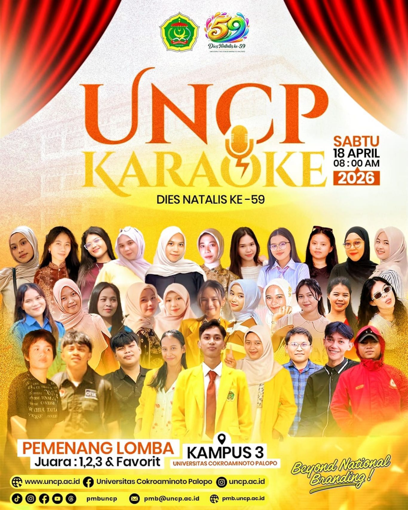 Tak kalah meriah, panggung hiburan dipenuhi semangat peserta lomba karaoke yang menampilkan suara emas dan penampilan menghibur. Sementara itu, kreativitas generasi muda juga tampak dalam lomba desain poster yang menghadirkan karya-karya inovatif dan inspiratif bertema Dies Natalis UNCP.